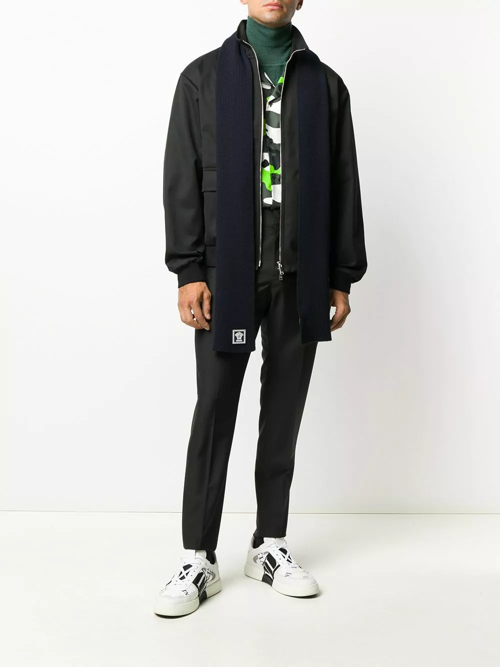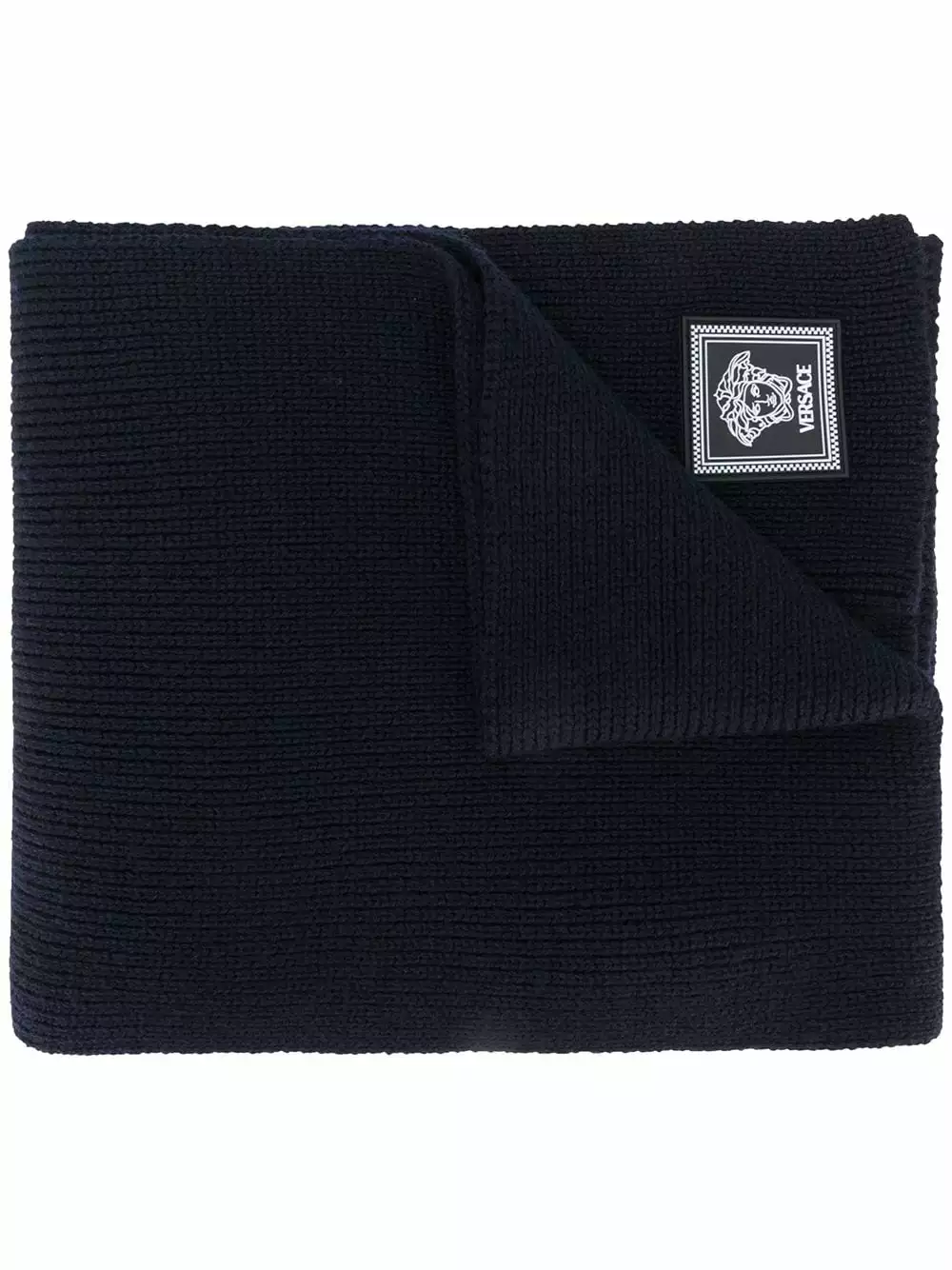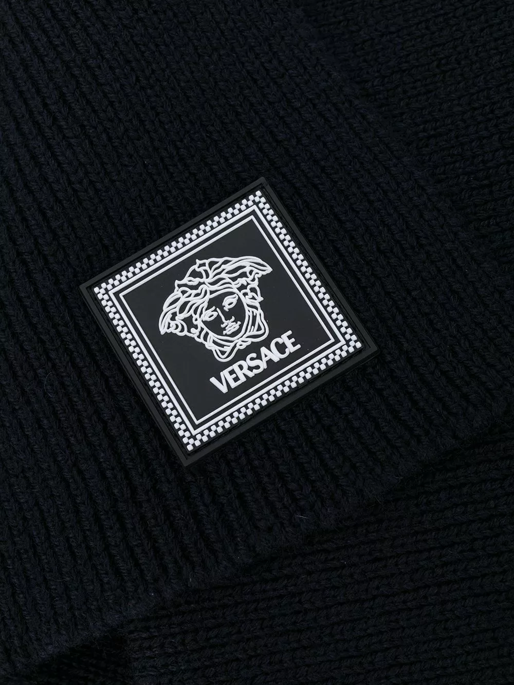 Cold weather? It’s not going to ruin your look. Because now you can pull on this logo-patch scarf from Versace.