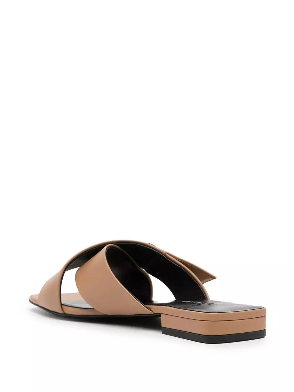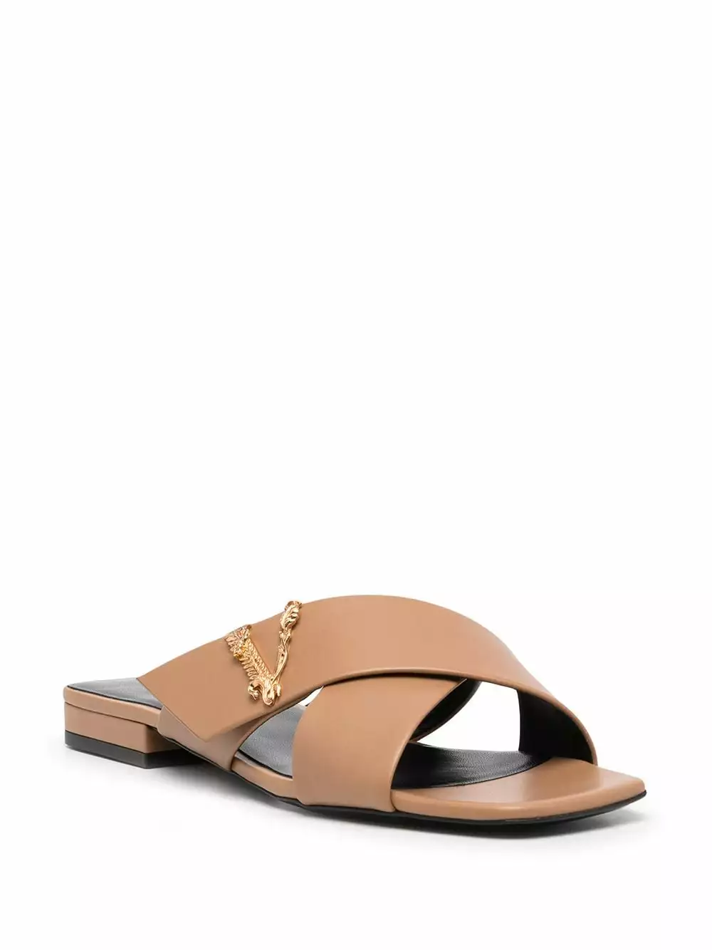 The gold-tone hardware plaque featured at the side of these crossover-strap detail sandals from Versace is inspired by the Roman deity Virtus. Symbolising strength, courage and character, it also ties in with the brand’s bold and opulent style.