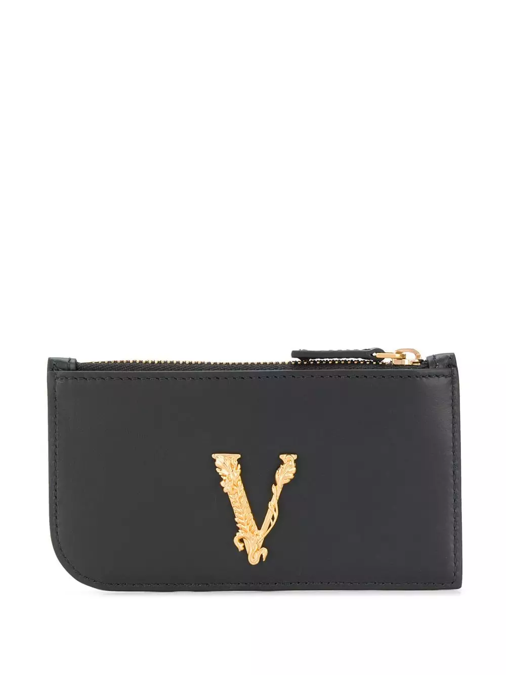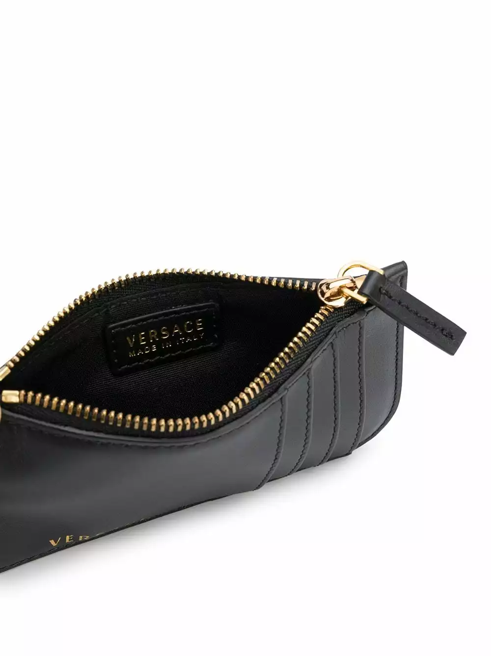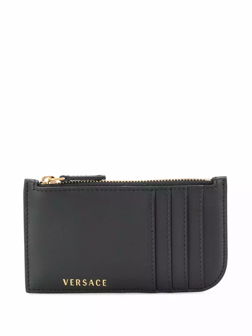 Feel good every time you reach a checkout. How? By pulling out this logo plaque Versace wallet, of course. Shopping just got even more fun! Featuring a gold-tone logo plaque, a back embossed logo stamp, a top zip fastening and multiple card slots.