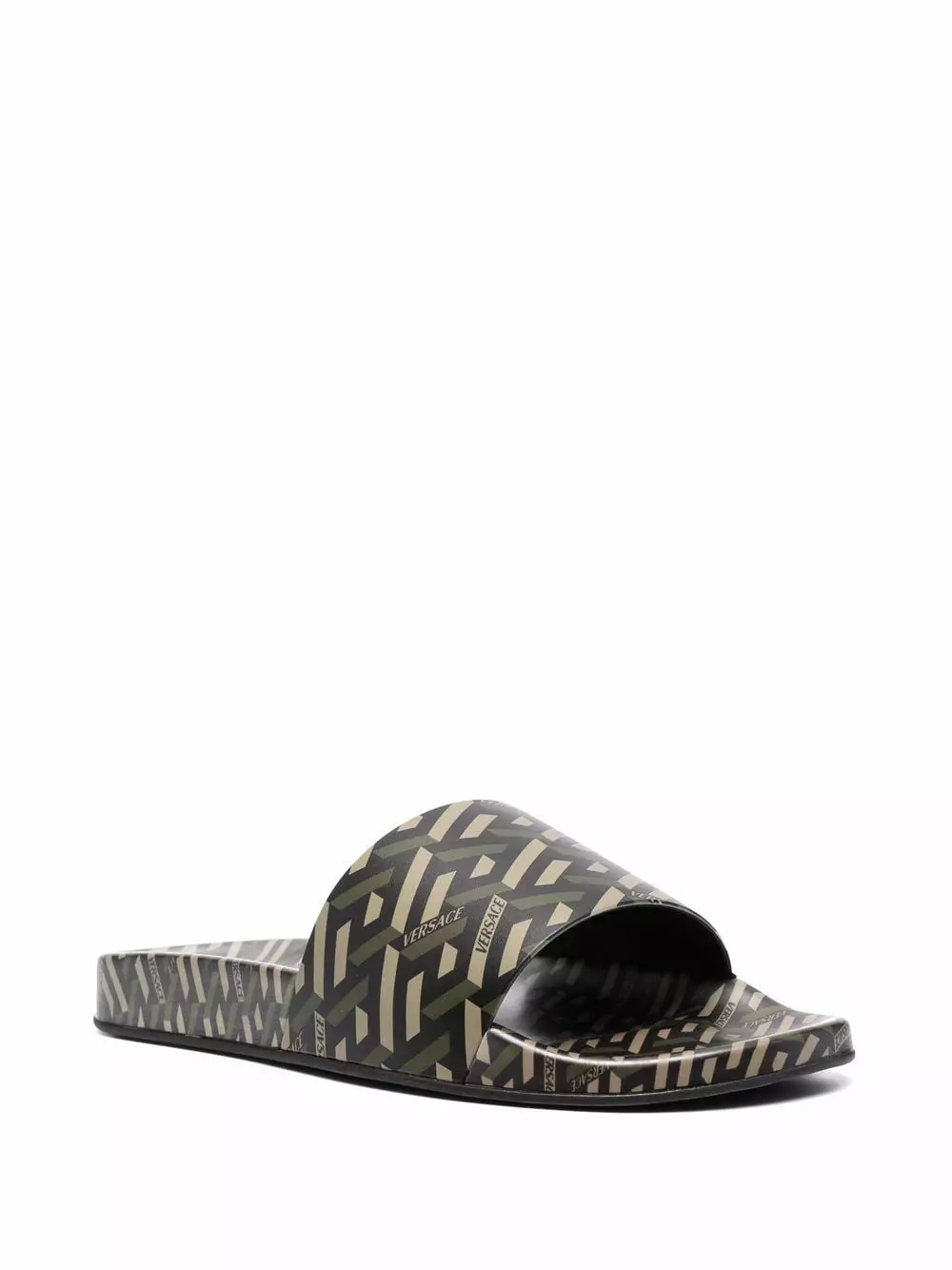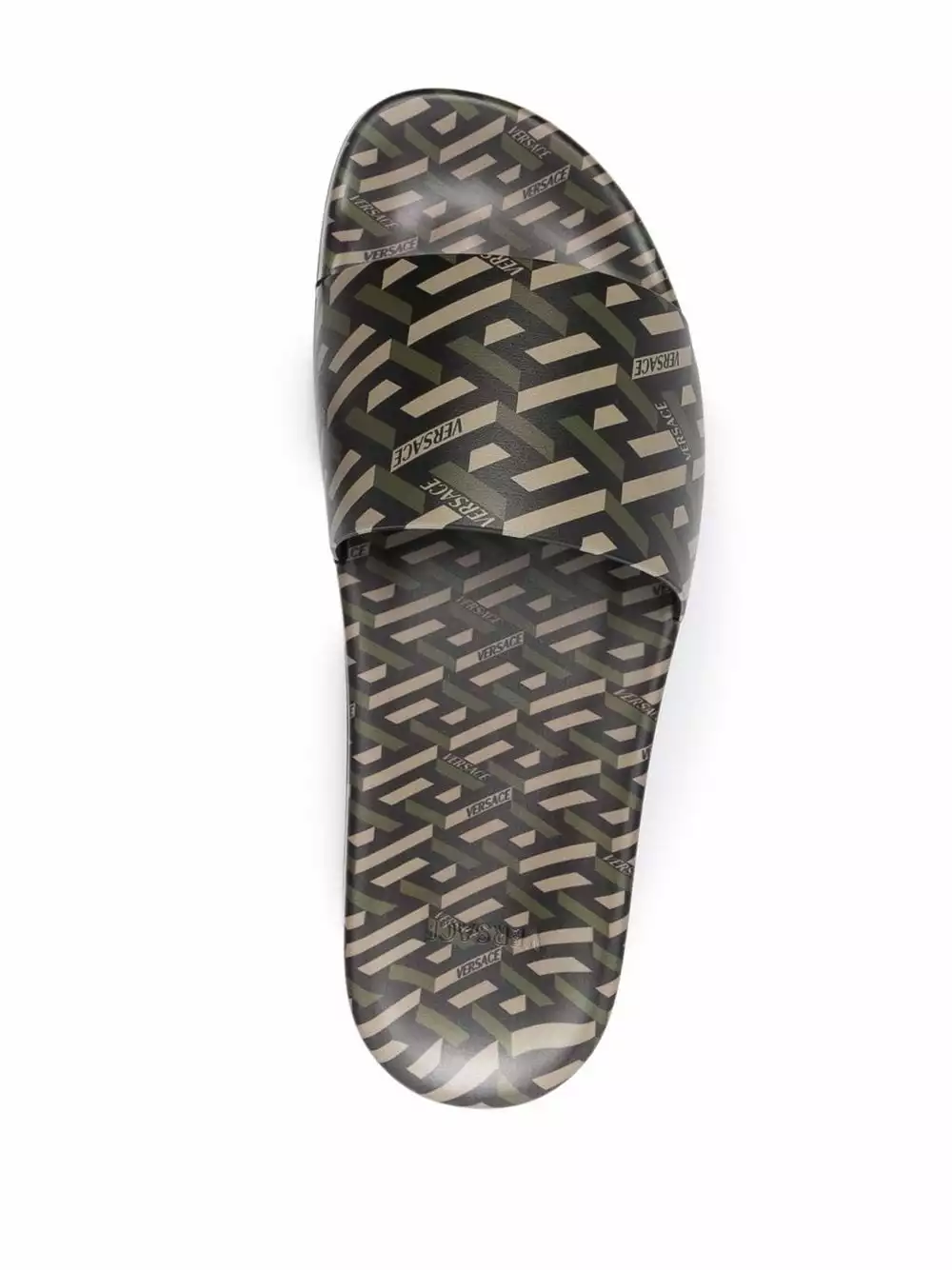 Versace proudly embraces the logomania trend. Decorated with an all-over logo print, these rubber slides embody the brand’s audacious attitude.