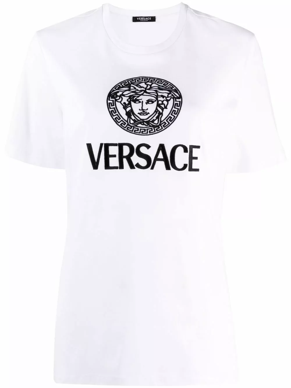 First seen at the house in 1993, the Medusa motif appears throughout Versace’s collections. It stands out on this T-shirt thanks to the contrasting two-tone design.