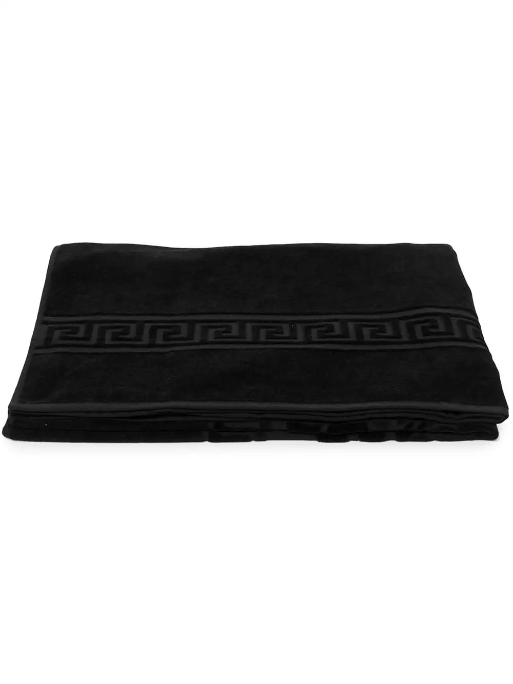Black cotton Medusa and Greek Key detail towel from Versace Home featuring a rectangular body, a central printed logo and a finished hem.