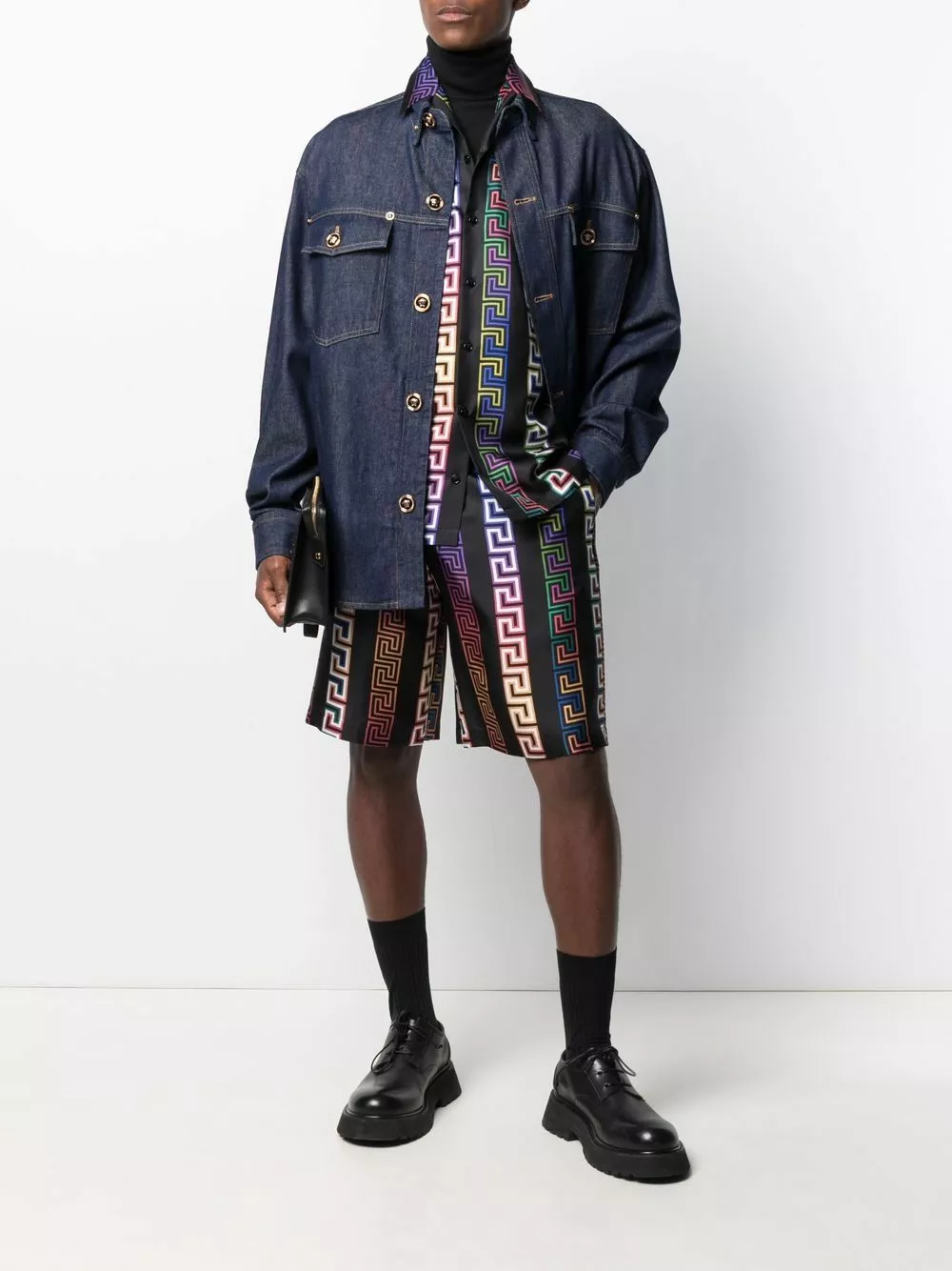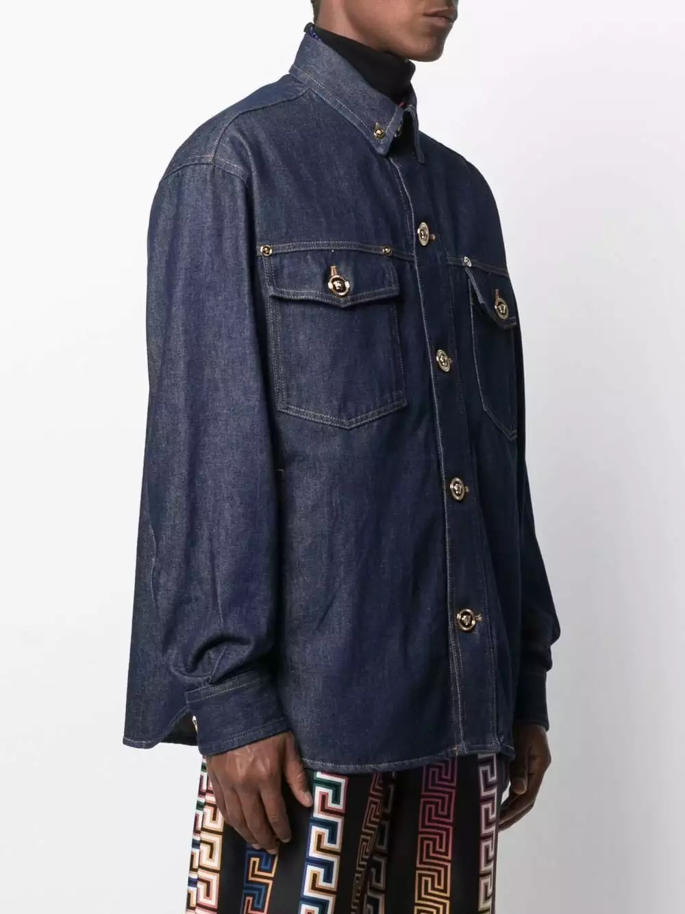 A classic design imbued with Versace’s boldness. Crafted from denim, this jacket is detailed with gold-tone Medusa buttons that will make for a striking silhouette.