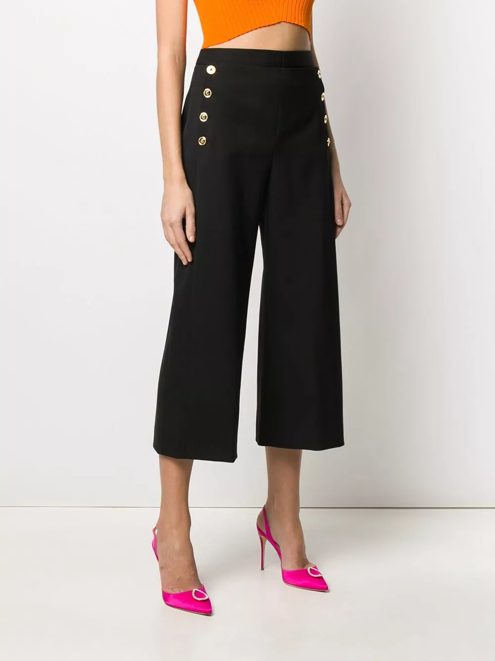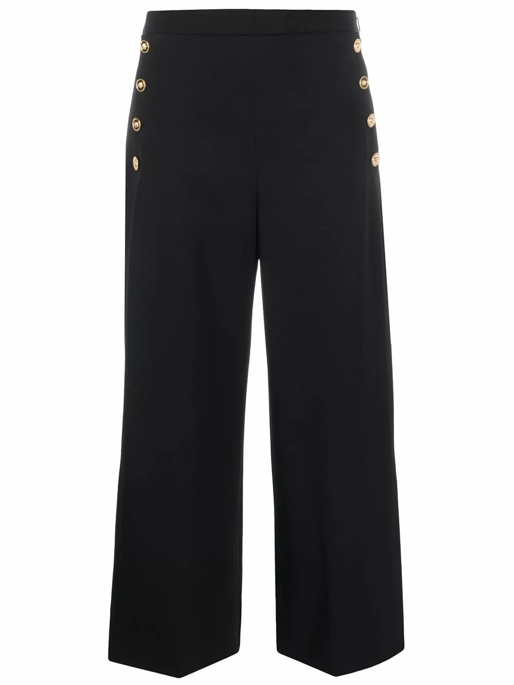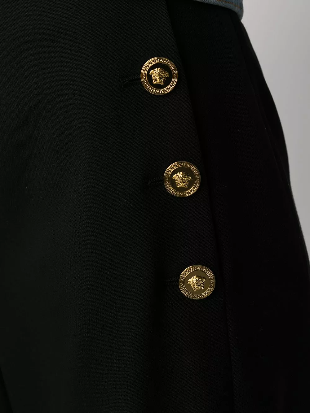 Well, well, well. If it isn’t Miss “I only wear jeans” lusting ove these button-embellished culottes from Versace once again. That’s why you should never say never – especially when you have Medusa starring you down.