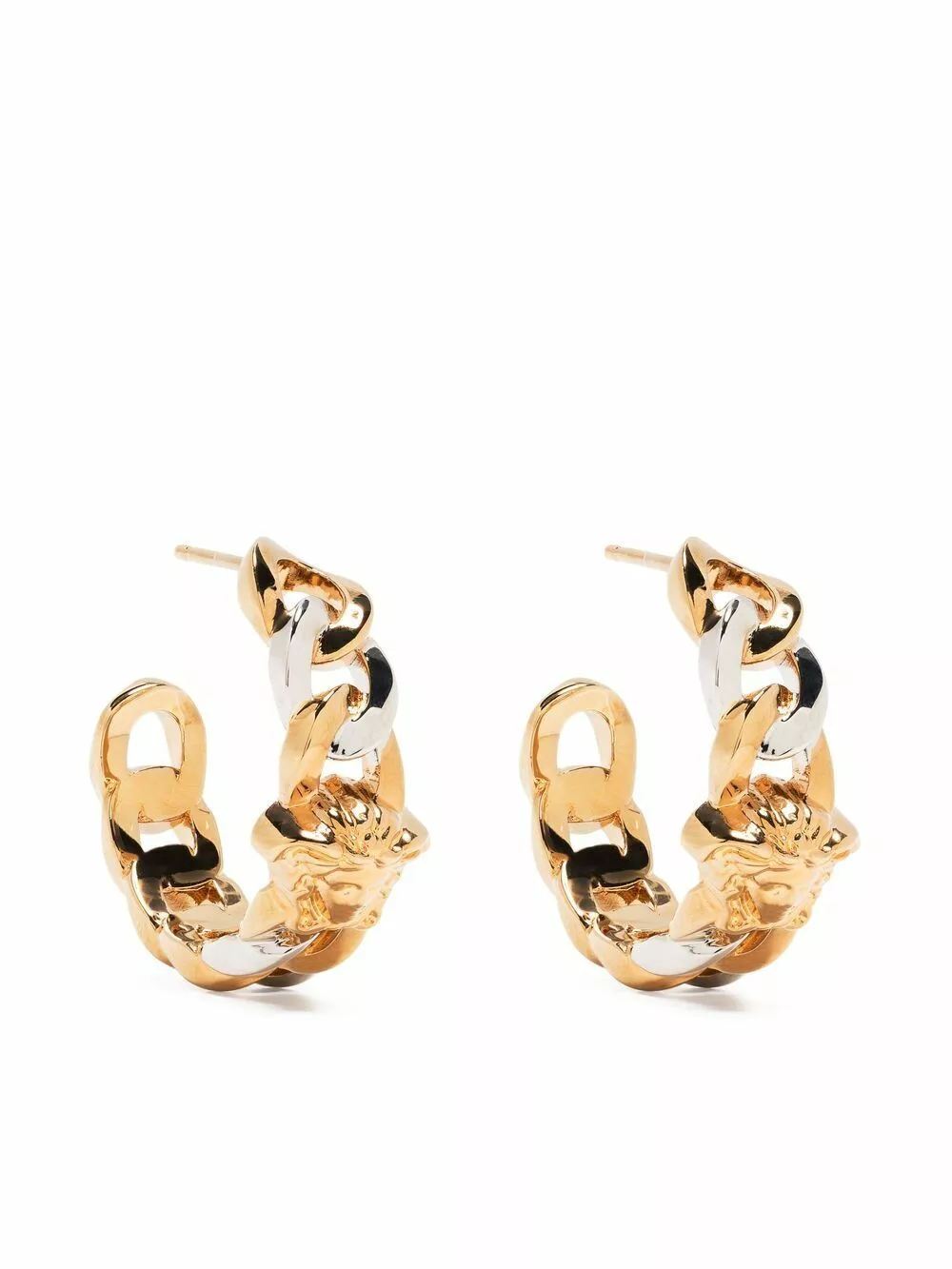 Inspired by Greek mythology, Versace has turned Medusa into one of the most iconic symbols of all time that can be seen across every collection. Constructed from polished gold and silver metal, these hoop earrings are detailed with a curb chain and the signature Medusa head reflecting the brand’s aesthetic.