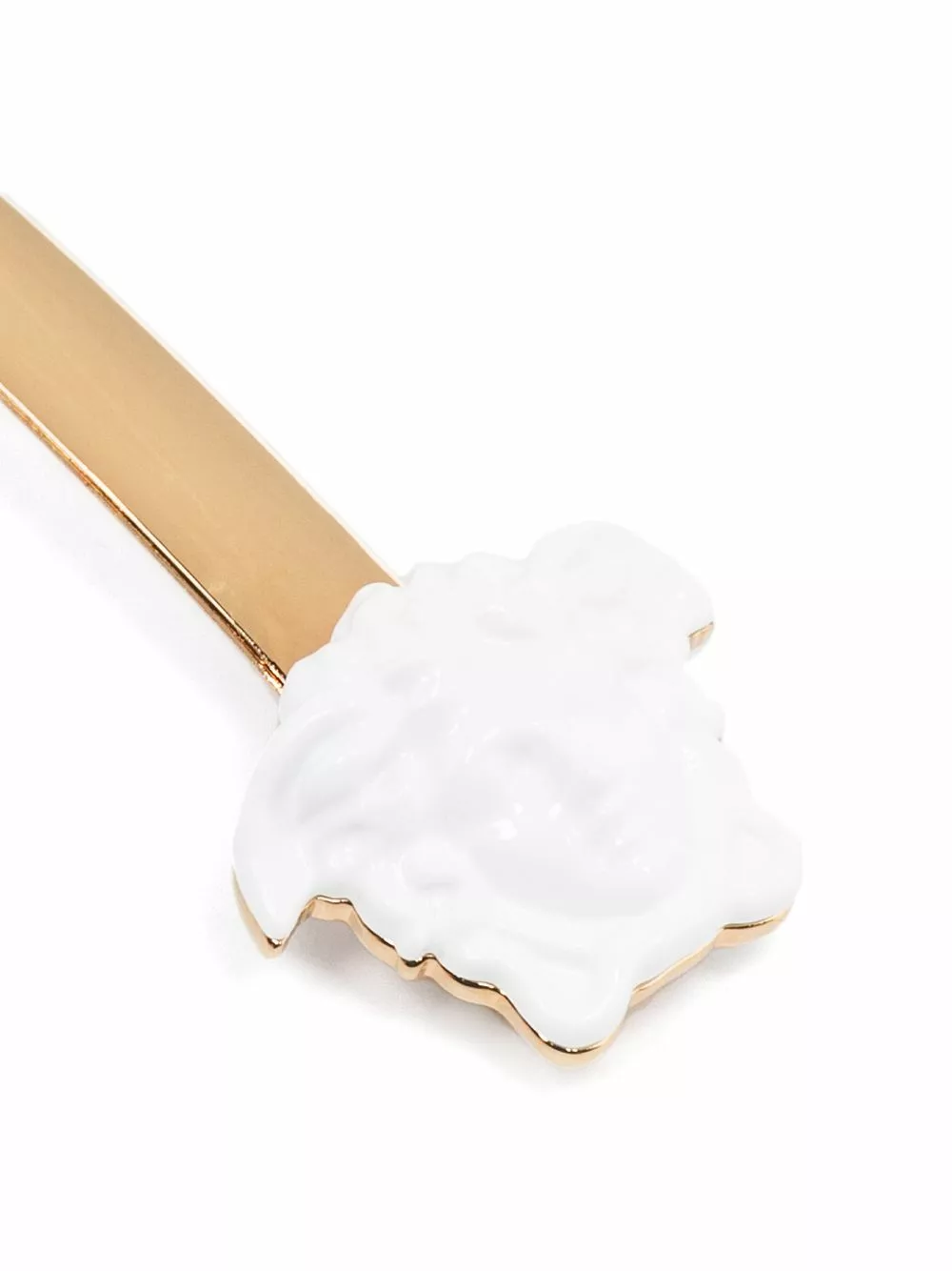 Do you feel like your look is your look missing something? Finish it with elegance with this sleek black hairpin from Versace that comes with the brand’s instantly recognizable Medusa head motif. Small but powerful.