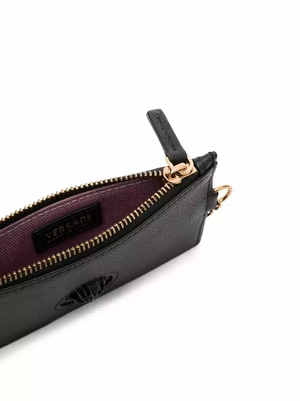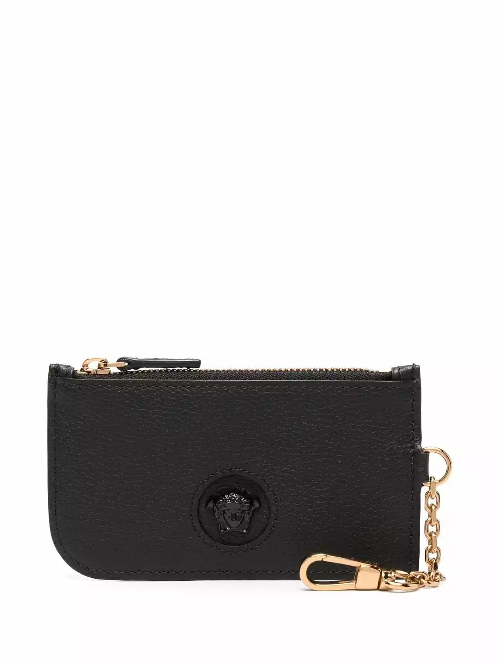A mainstay for the brand, Versace’s Medusa Head motif appears on a multitude of items year after year, as seen on this black leather wallet. Detailed with a tonal plaque of the infamous gorgon, gold-tone hardware ensures Italian refinery.