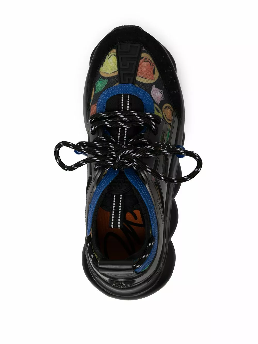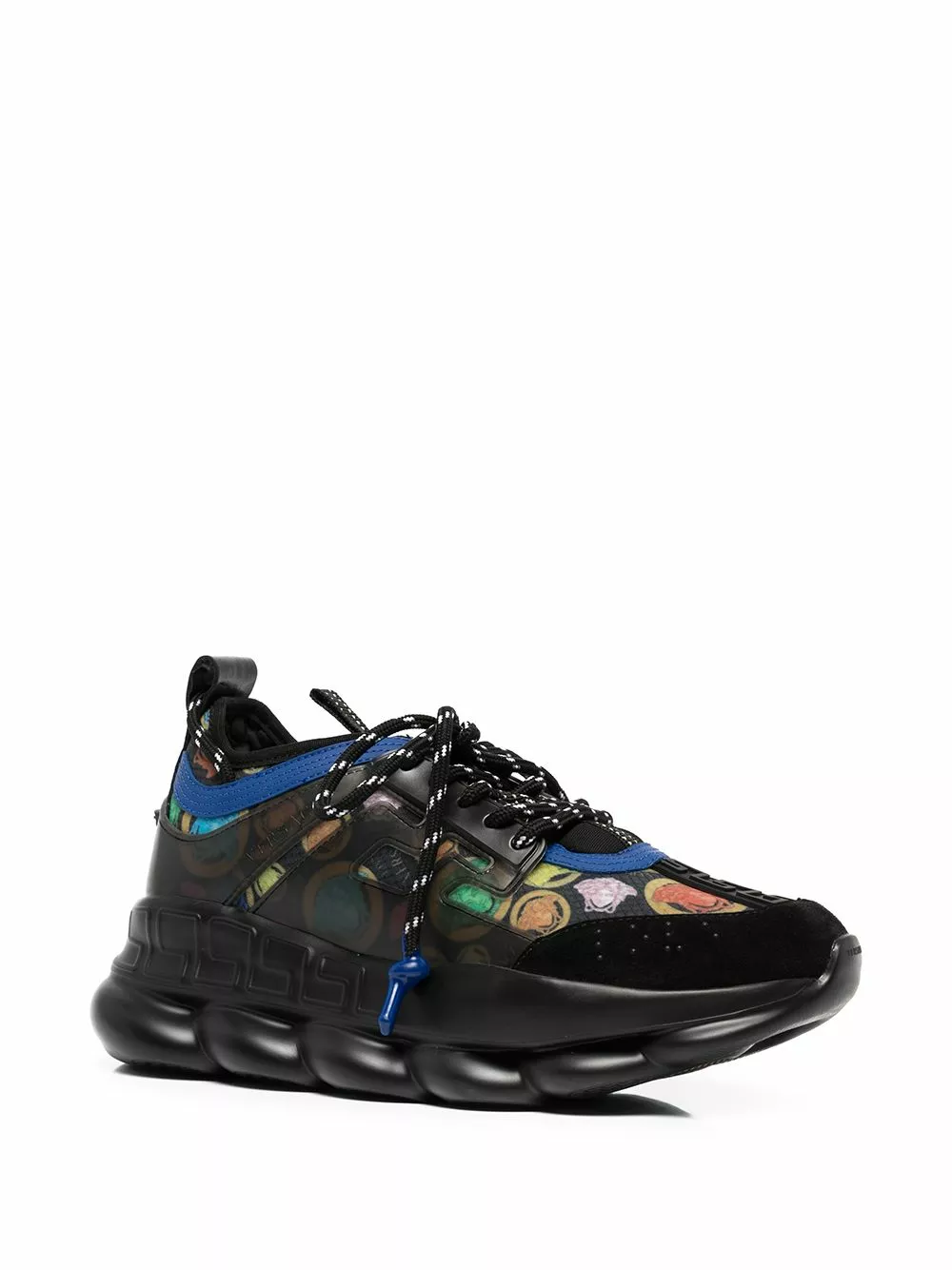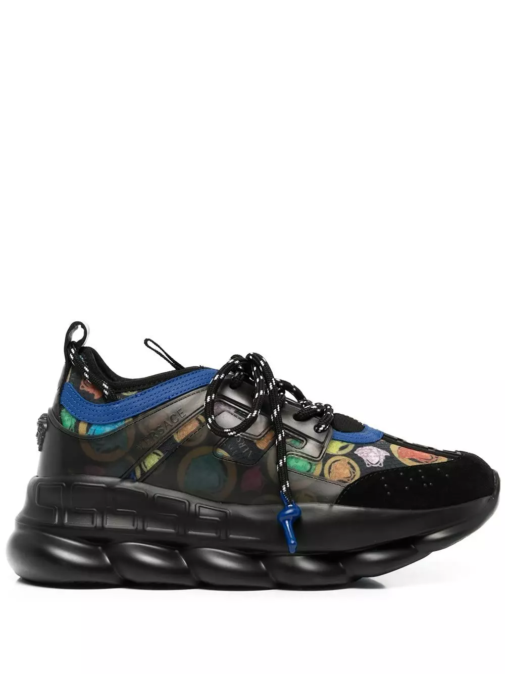 Using key motifs of the brand, such as the Medusa head and Greca pattern, it makes this pair of lace-up sneakers from Versace instantly recognisable. In a multicolour palette, this detailing also reflects the signature bold approach to opulence.