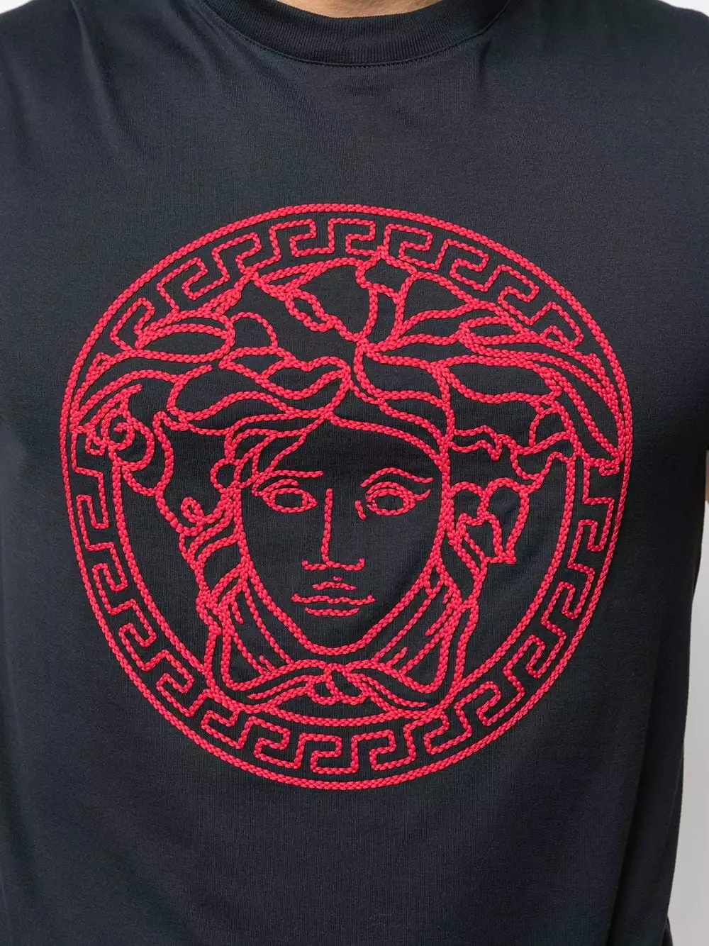 It’s all eyes on you when you’re wearing Versace. Even with the Medusa-head motif to the front of this Versace T-shirt, you’ll be catching everyone’s attention. Get ready to feel good in your favourite brand.