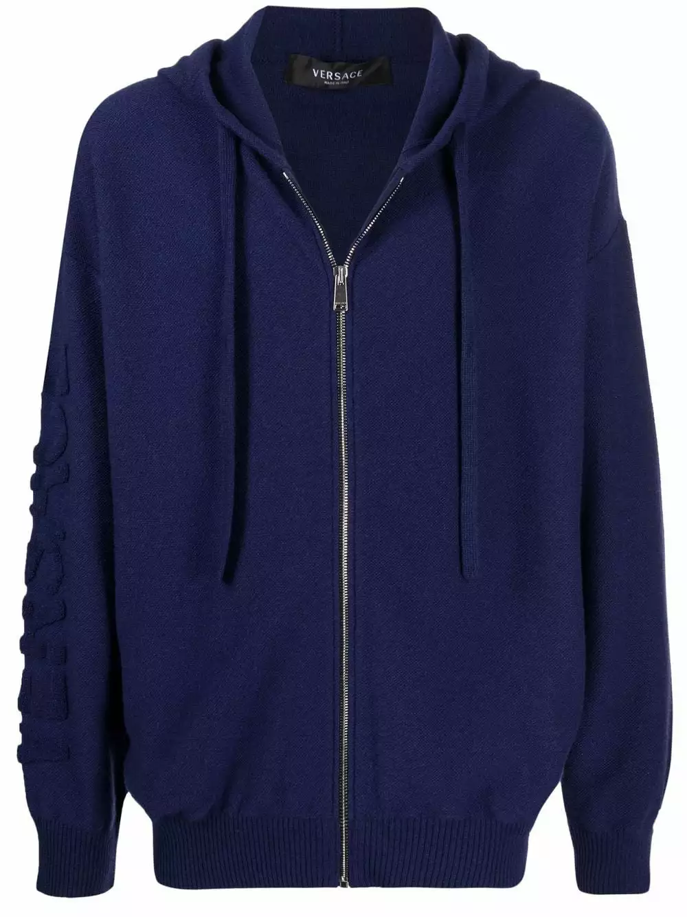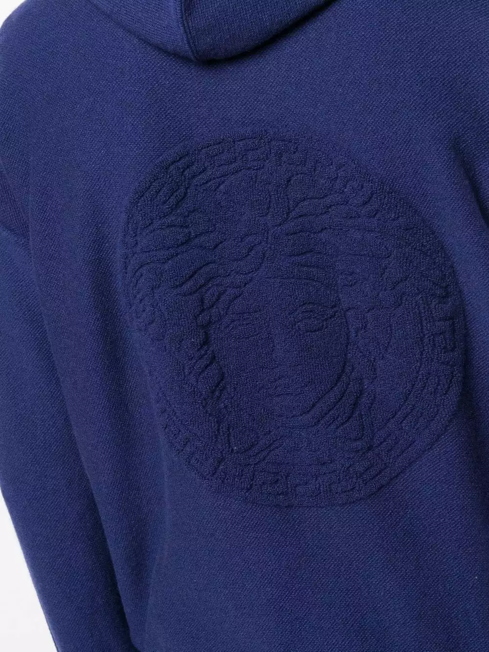 Inspired by Greek mythology, the Medusa head has become a synonymous symbol of Versace. Given a contemporary twist in this zip-fastening hoodie design, it is featured on the back in a tonal colourway with a textured finish.