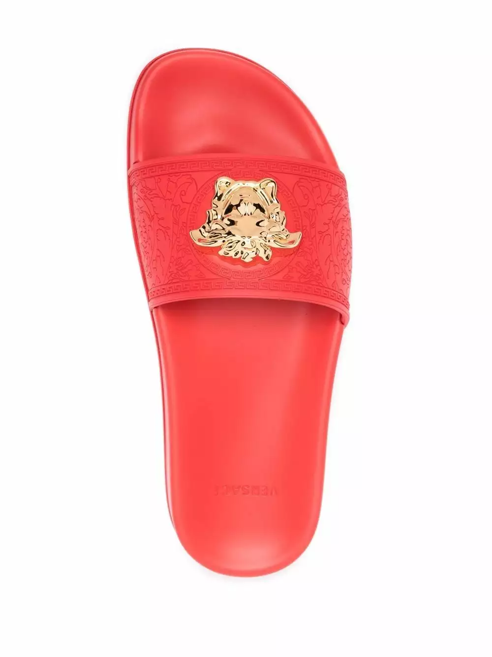 Inspired by Greek mythology, Versace’s use of the Medusa head is now synonymous with the brand. Featured at the front of these open-toe sliders in gold-tone hardware, it symbolises the brand’s opulent style and the ancient figure’s power, strength and beauty.