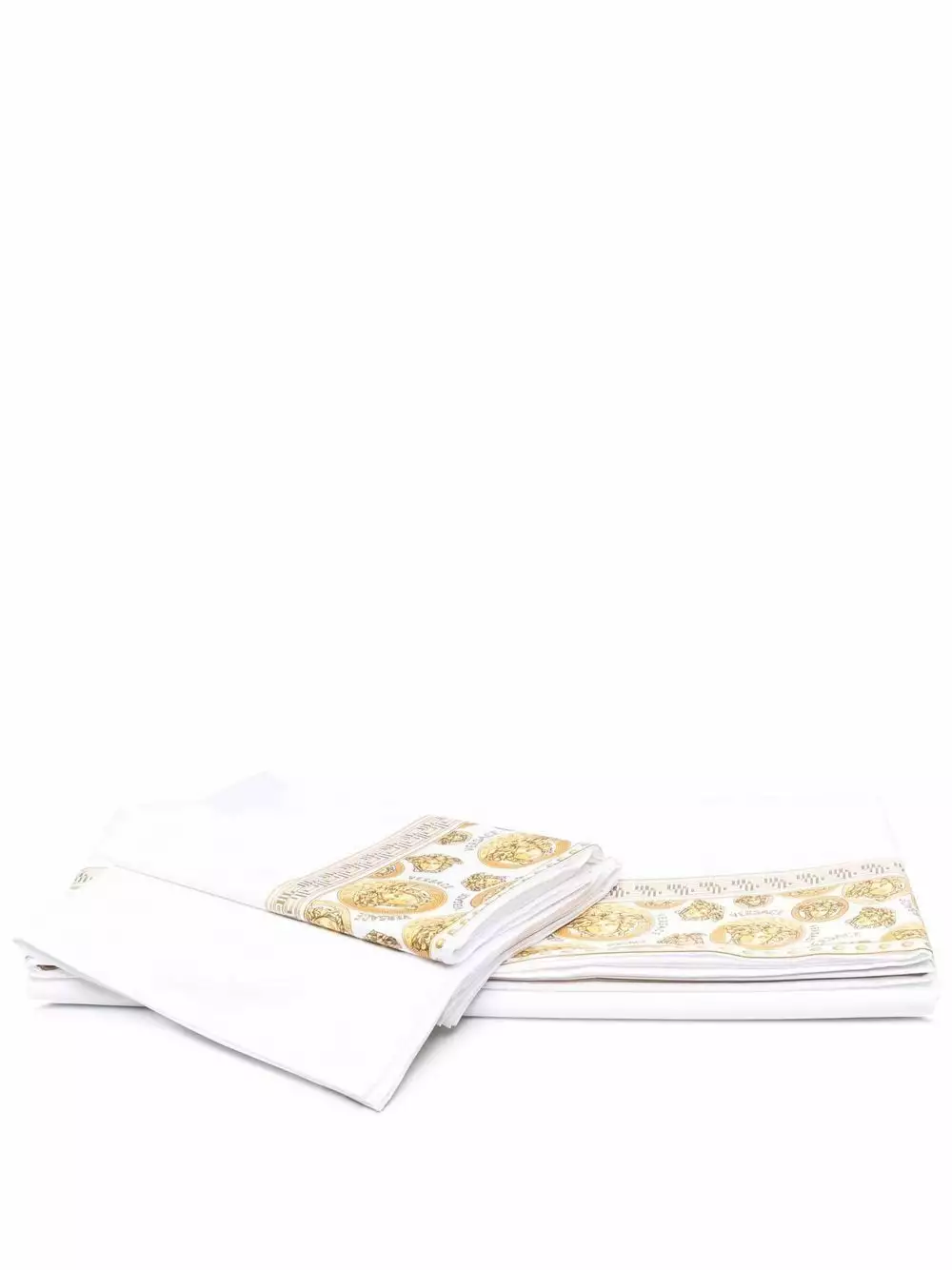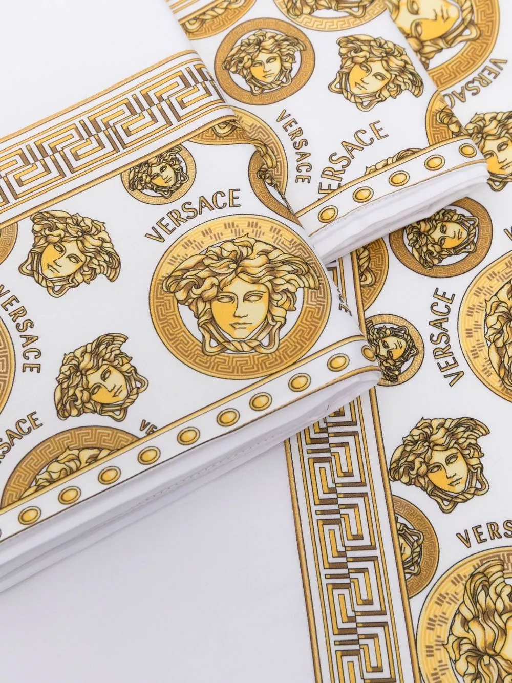 Bringing the signature Versace flair into the home, this Medusa Head-print duvet set is decorated with an all-over print in a white and gold-tone colourway.