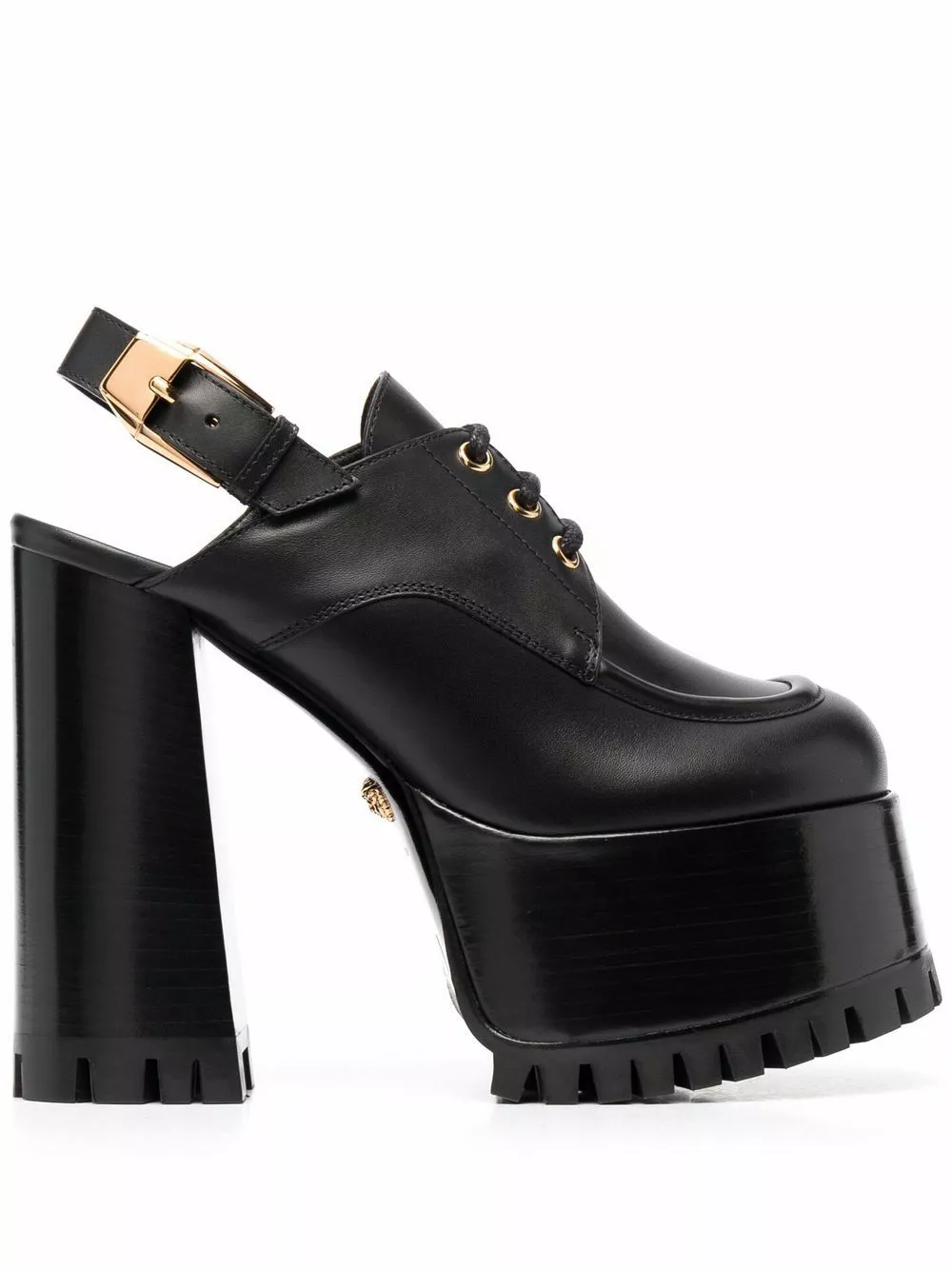 Designed to reflect the confidence at the heart of Versace, these mules stand out thanks to their platform sole and high heel. Underfoot, the iconic Medusa motif can be spotted on the sole.