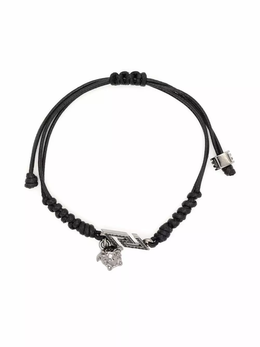 Heritage logos appear on this bracelet, paying homage to Versace’s Ancient Greek inspirations. The Medusa motif- a brand signature since 1993 – appears as a charm detail alongside the signature Greca pattern.