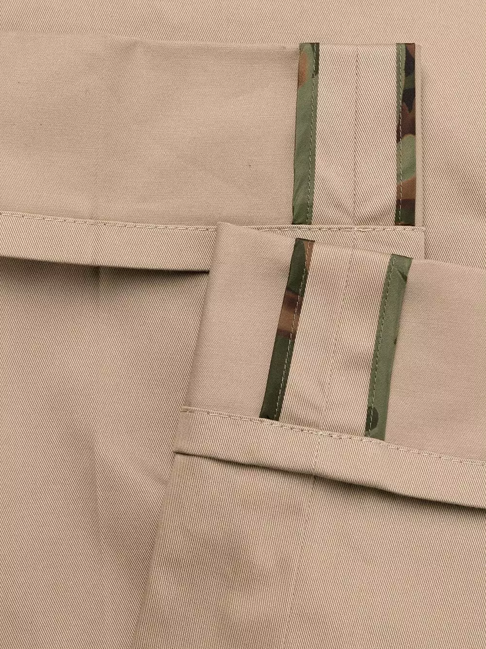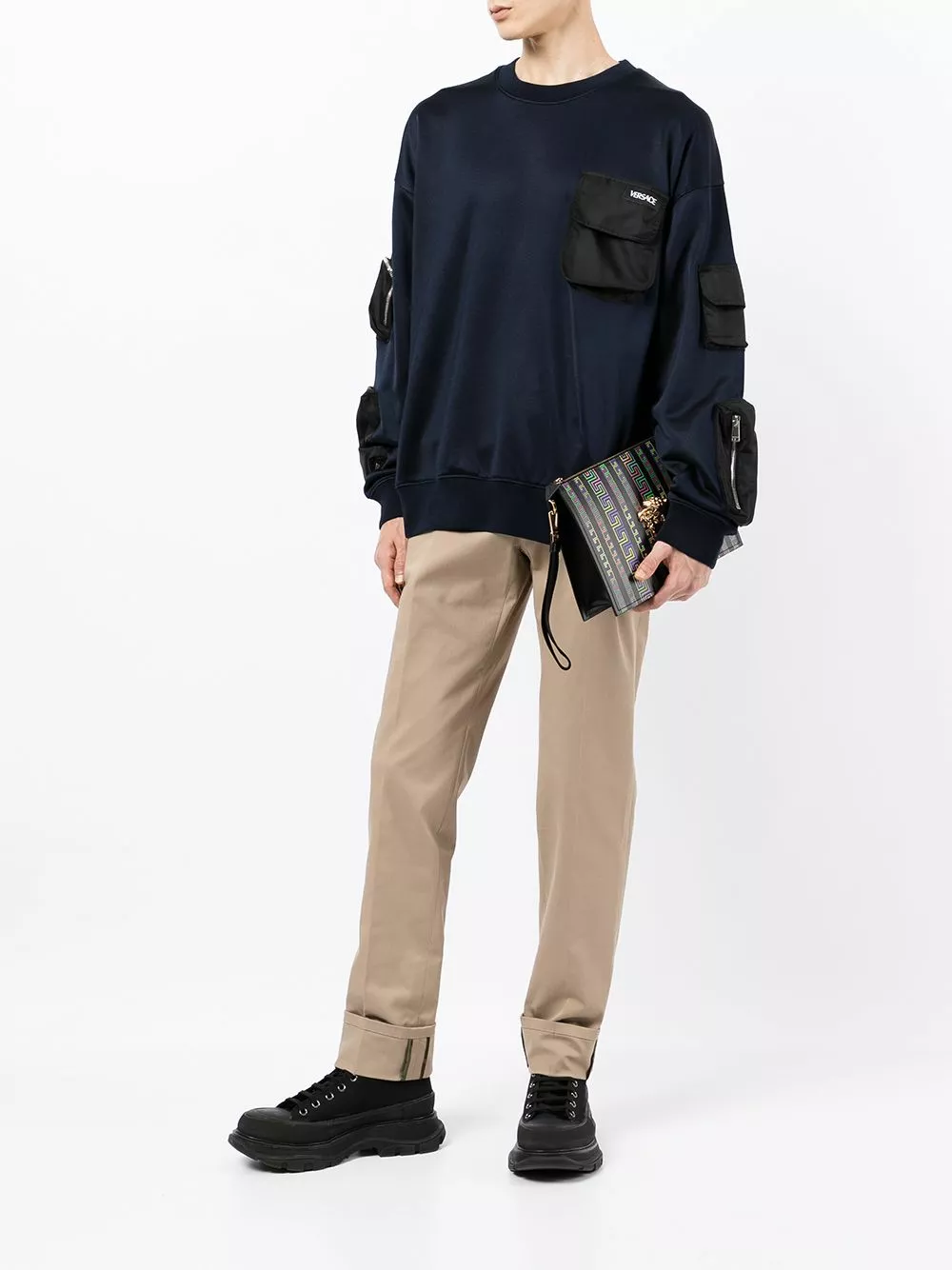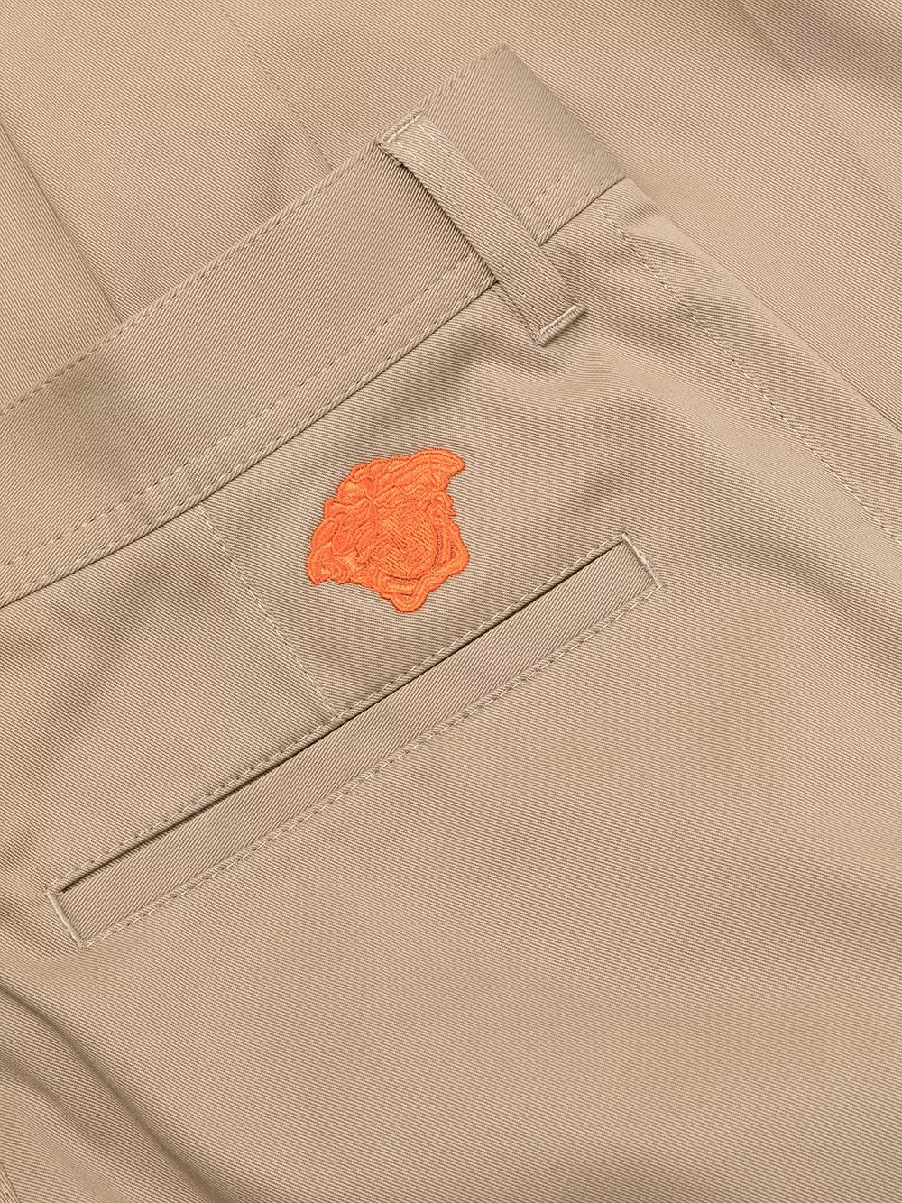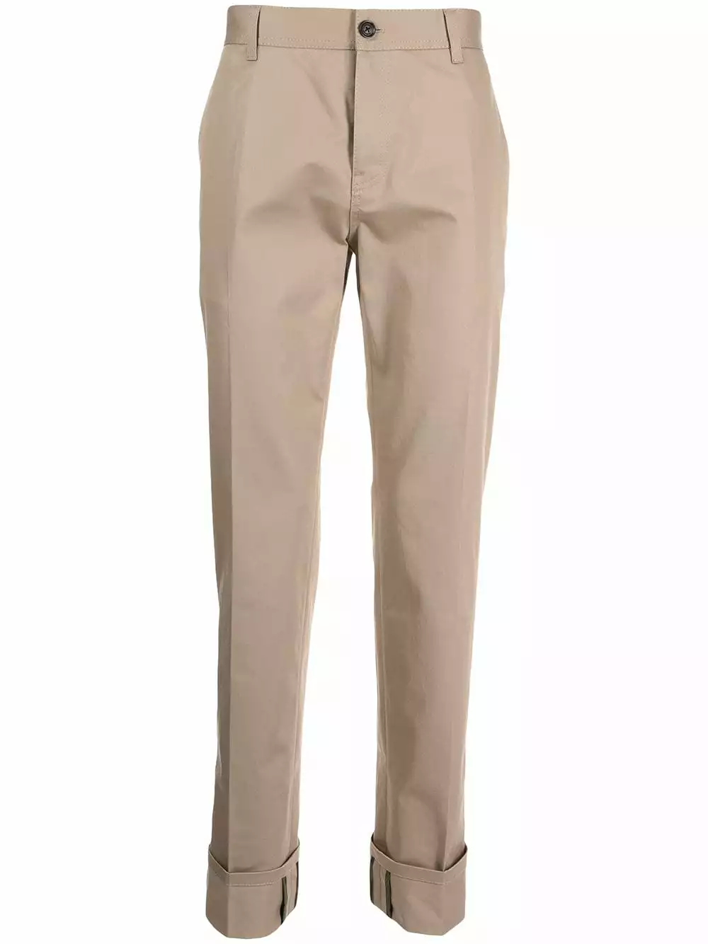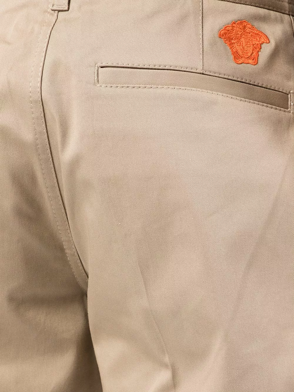 Versace puts their signature twist on a classic style. These gabardine chinos are subtly elevated by the embroidered Medusa motif at the back and the turn-up hems with piped trim.