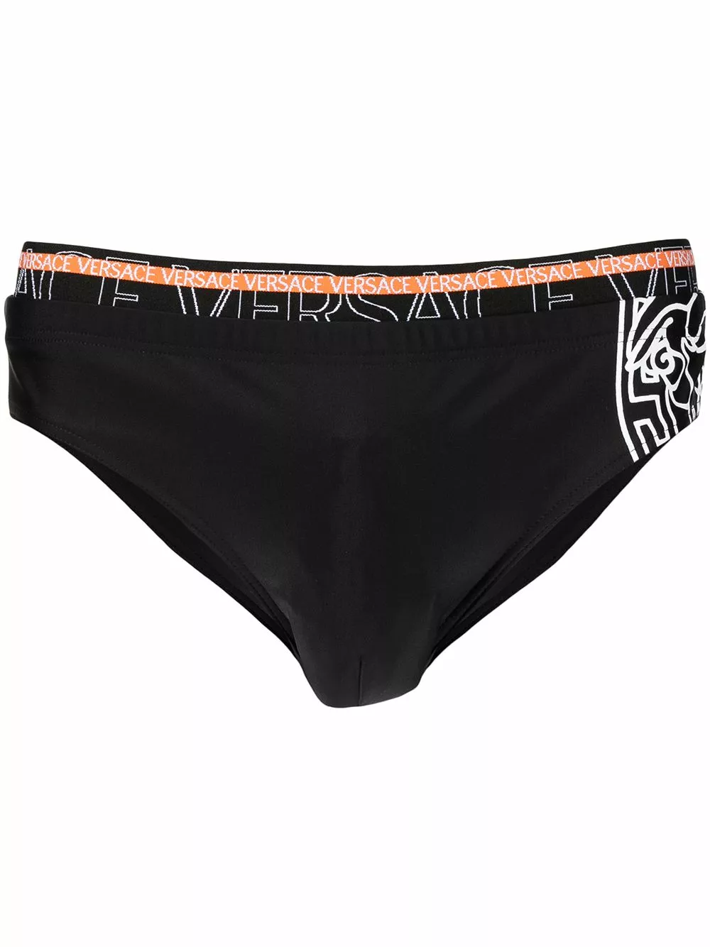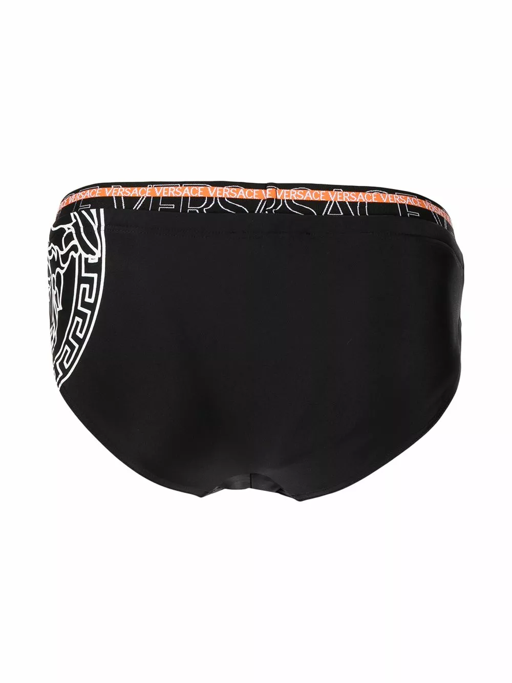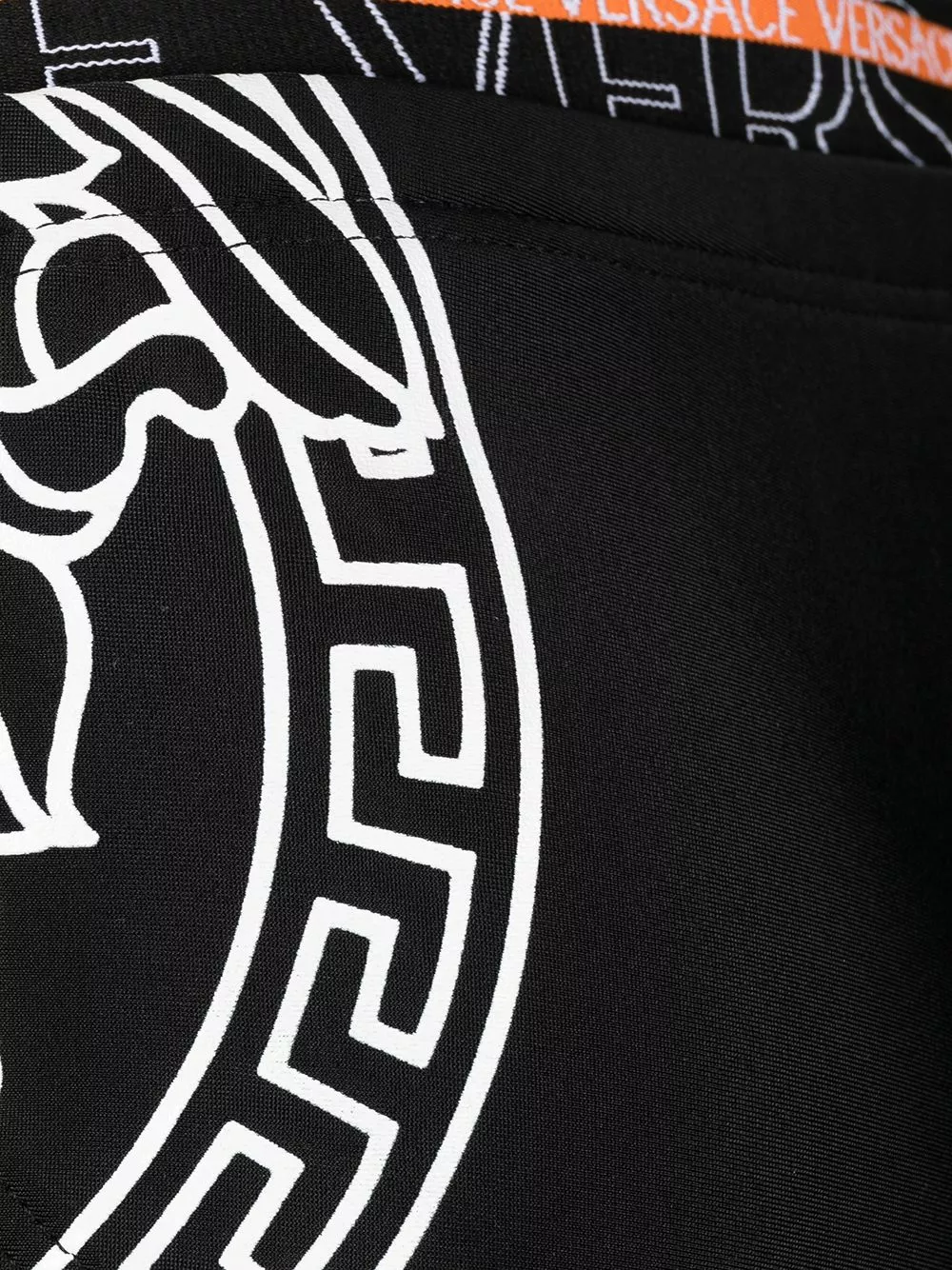 Go all out in these Versace swim trunks. Their Medusa motif design will be the perfect match for the luxurious holiday you take them on. Time for a dip.