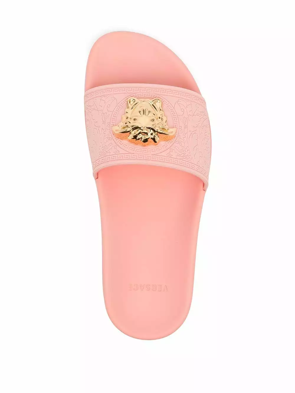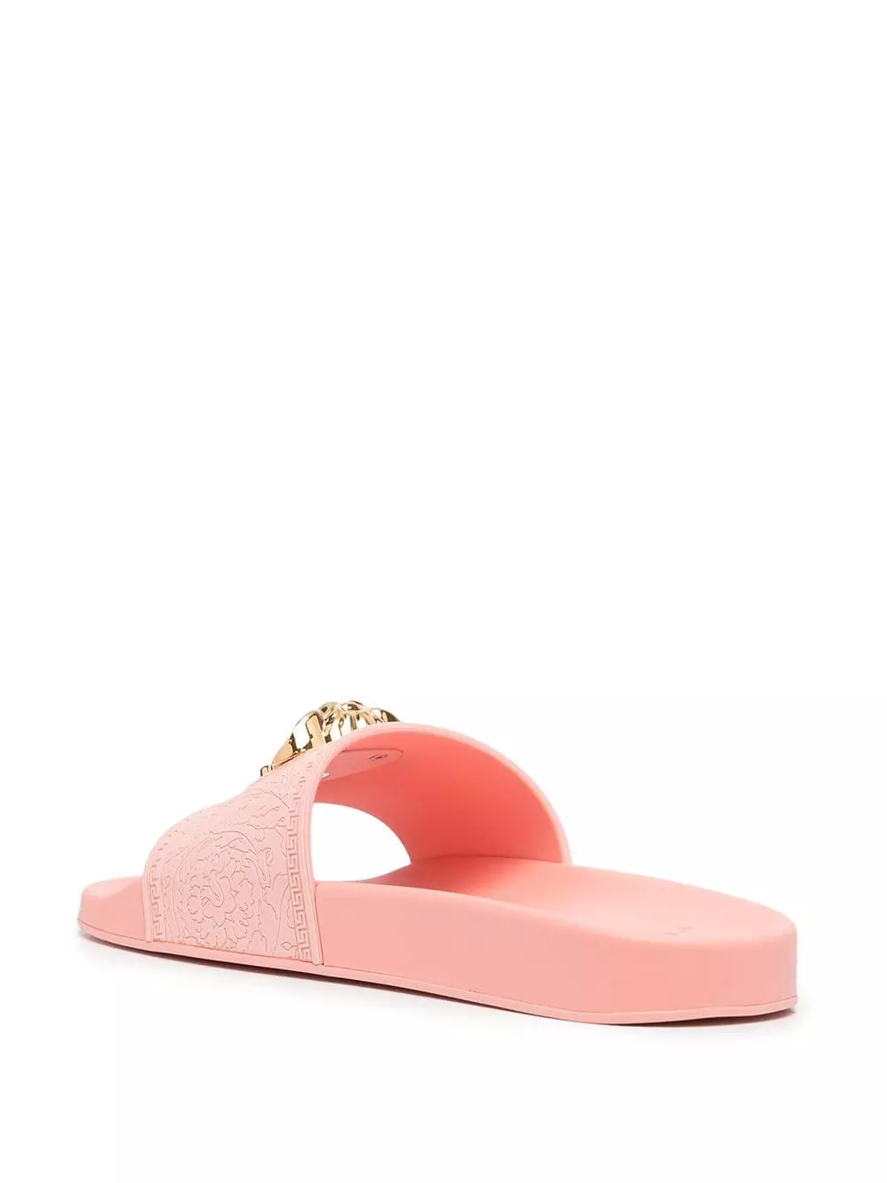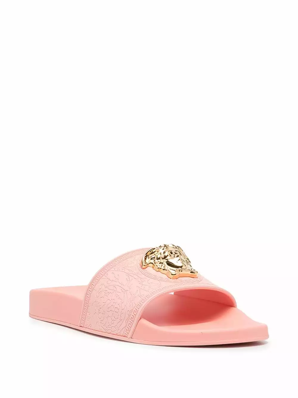 The gold-tone hardware plaque featured at the front of these open-toe slides from Versace is inspired by Medusa from Greek mythology. Symbolising power, strength and beauty, it also ties in with the brand’s bold and opulent style.