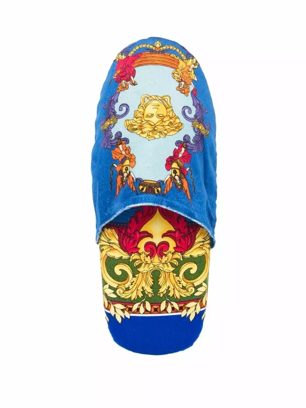 Versace’s eye-catching Medusa Renaissance print slippers celebrate the best of the brand’s illustrious Italian DNA. Constructed from cotton, the soft silhouette boasts an almond toe and comfortable slip-on design.