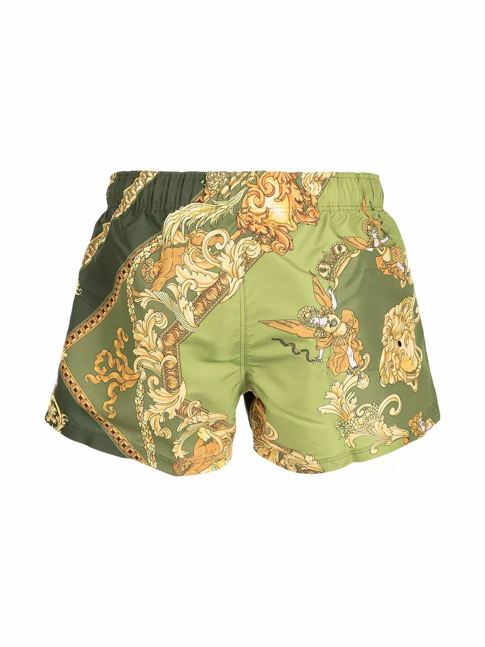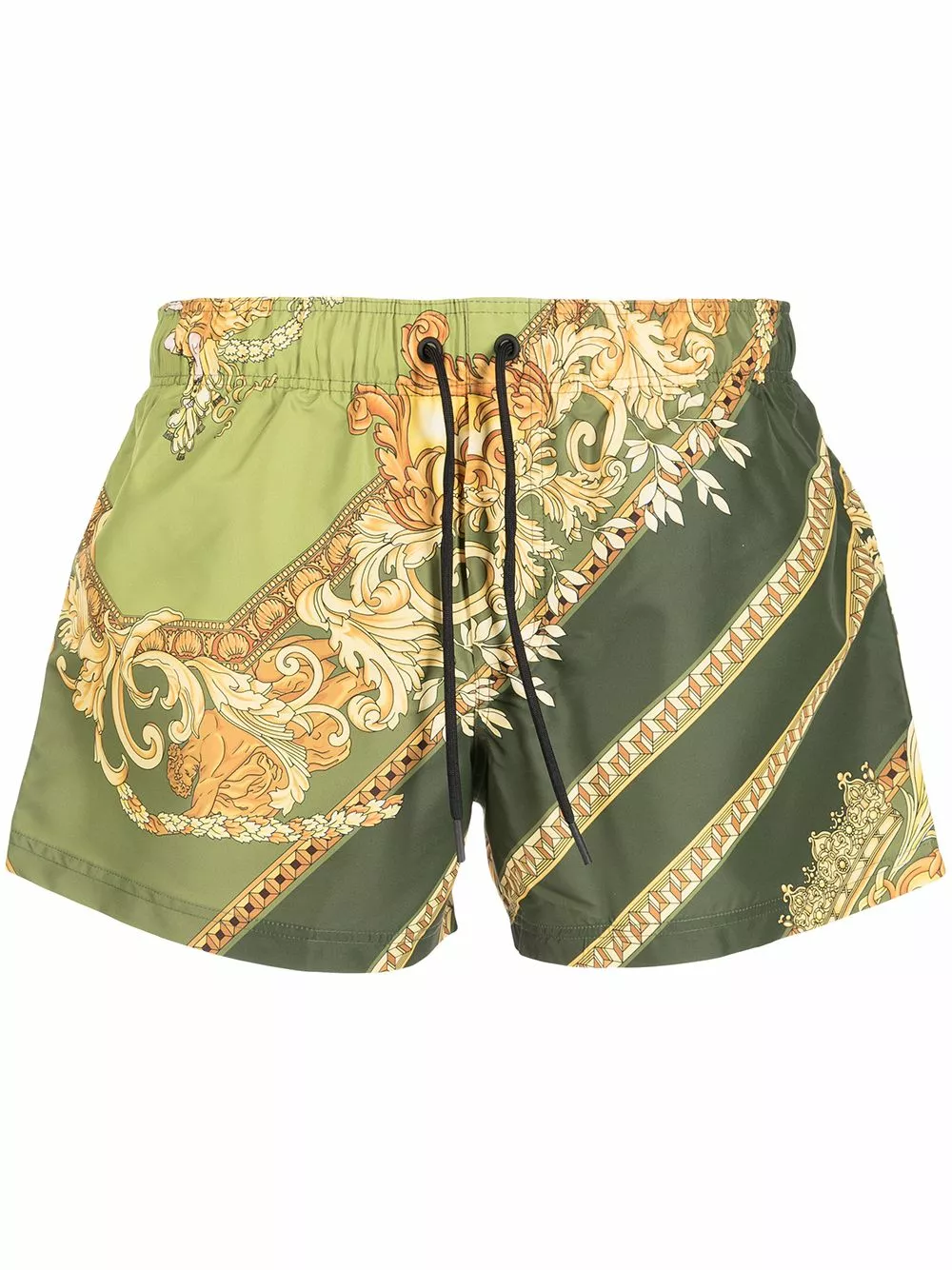 These swim shorts from Versace are decorated with a Medusa Renaissance print. This motif celebrates the brand’s Italian heritage, combining house codes with elements of Renaissance art.
