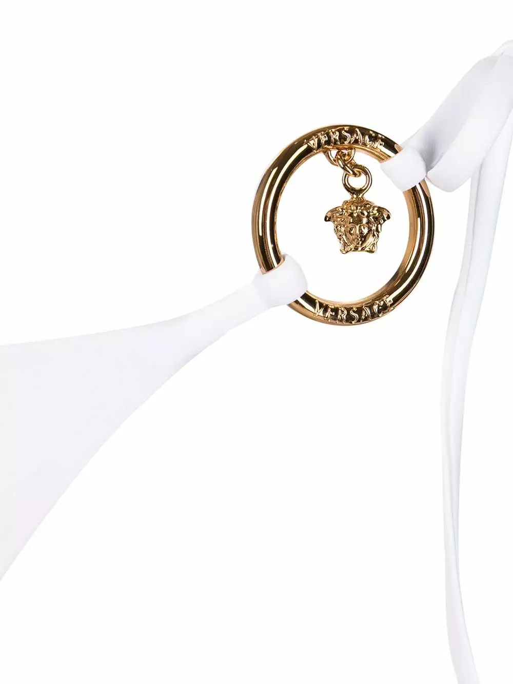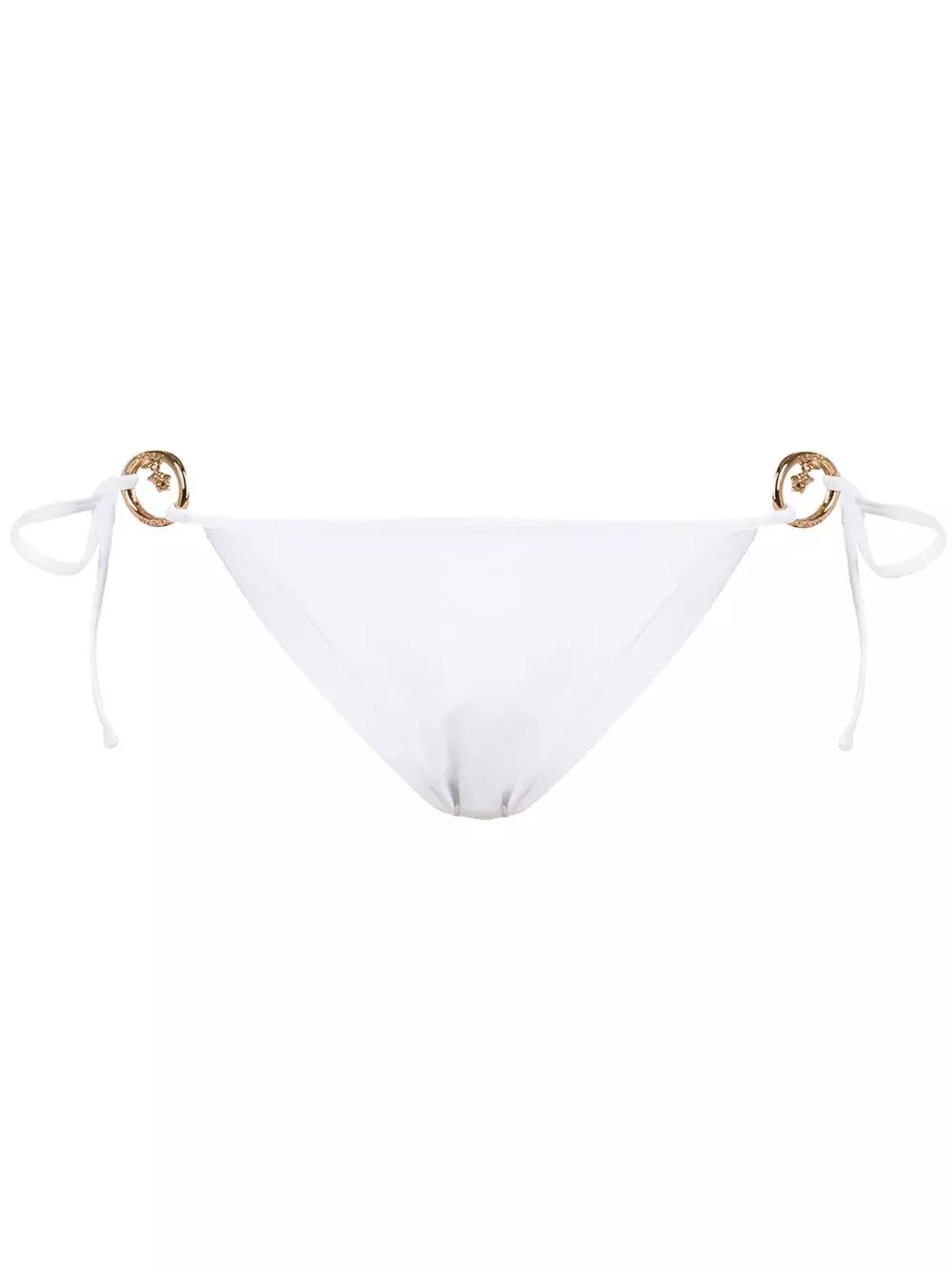 Infuse some signature Versace into your beach look with these white tie-side bikini briefs. Designed with gold-tone logo-engraved rings detailed with the signature Medusa motif dangling in the centre, these elegant pair are perfect for poolside relaxing and practicing your swimming skills.