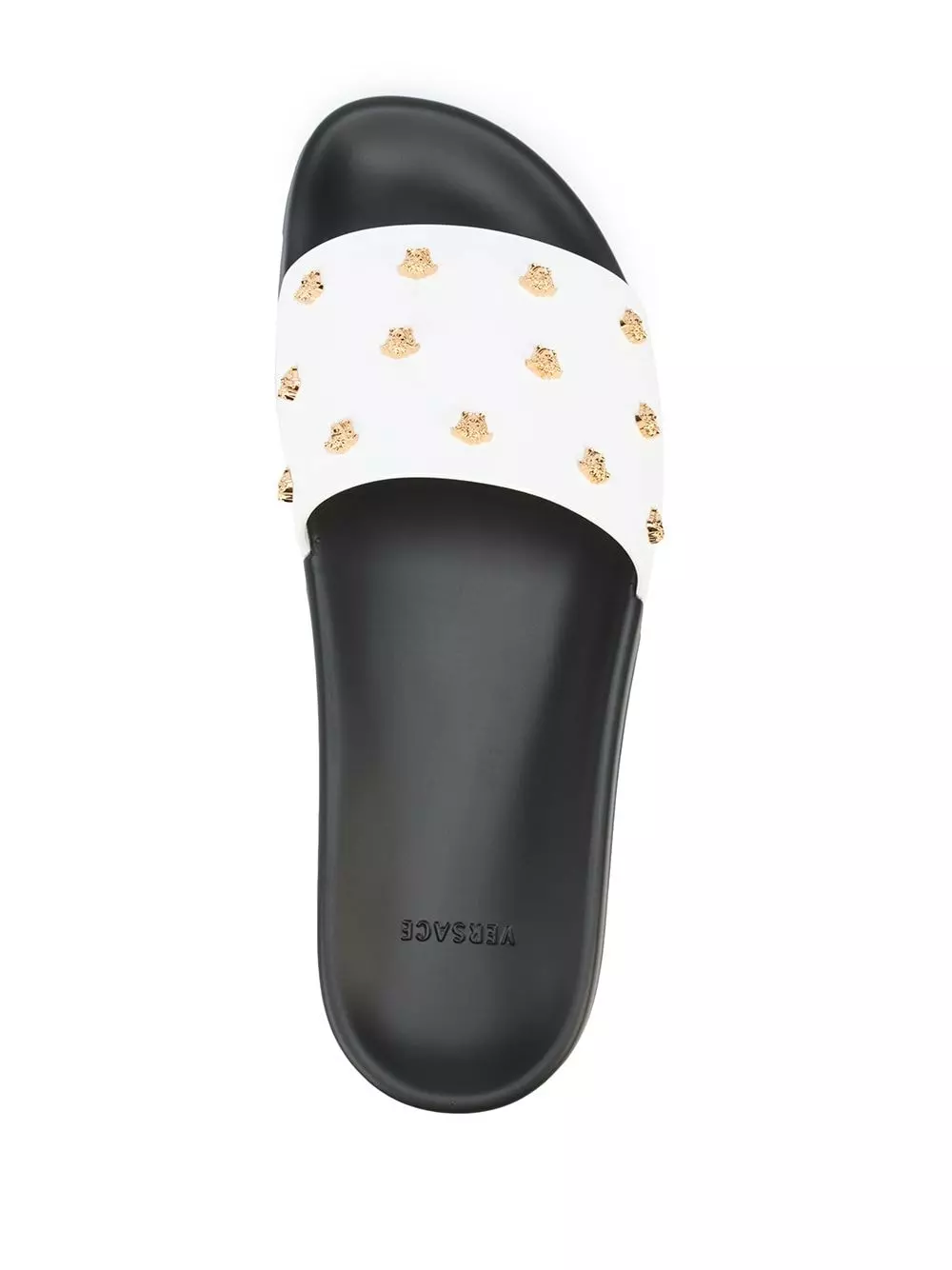 An iconic Versace motif, the Medusa Head was first used by the brand in 1993. In these slides, the gold-tone Greek-inspired motif takes centre stage.