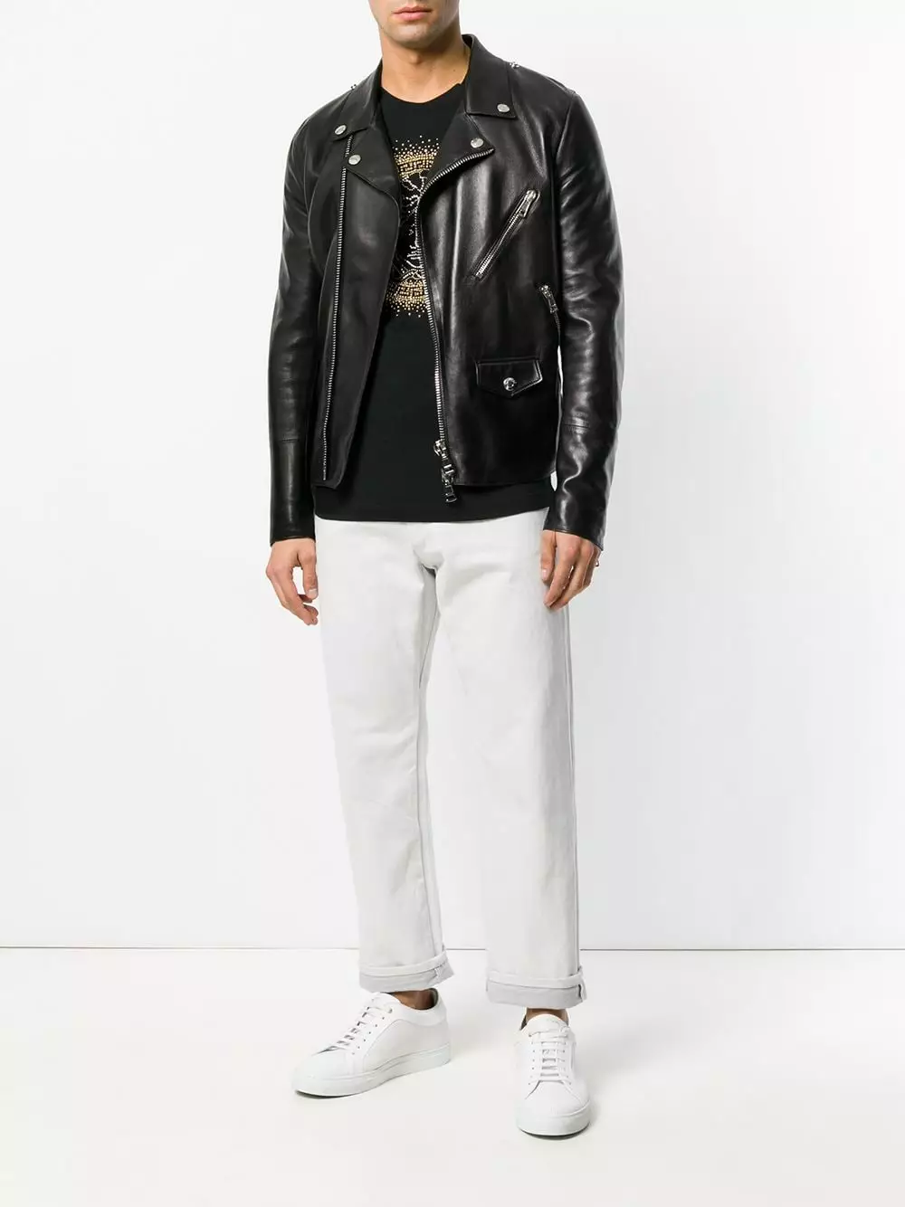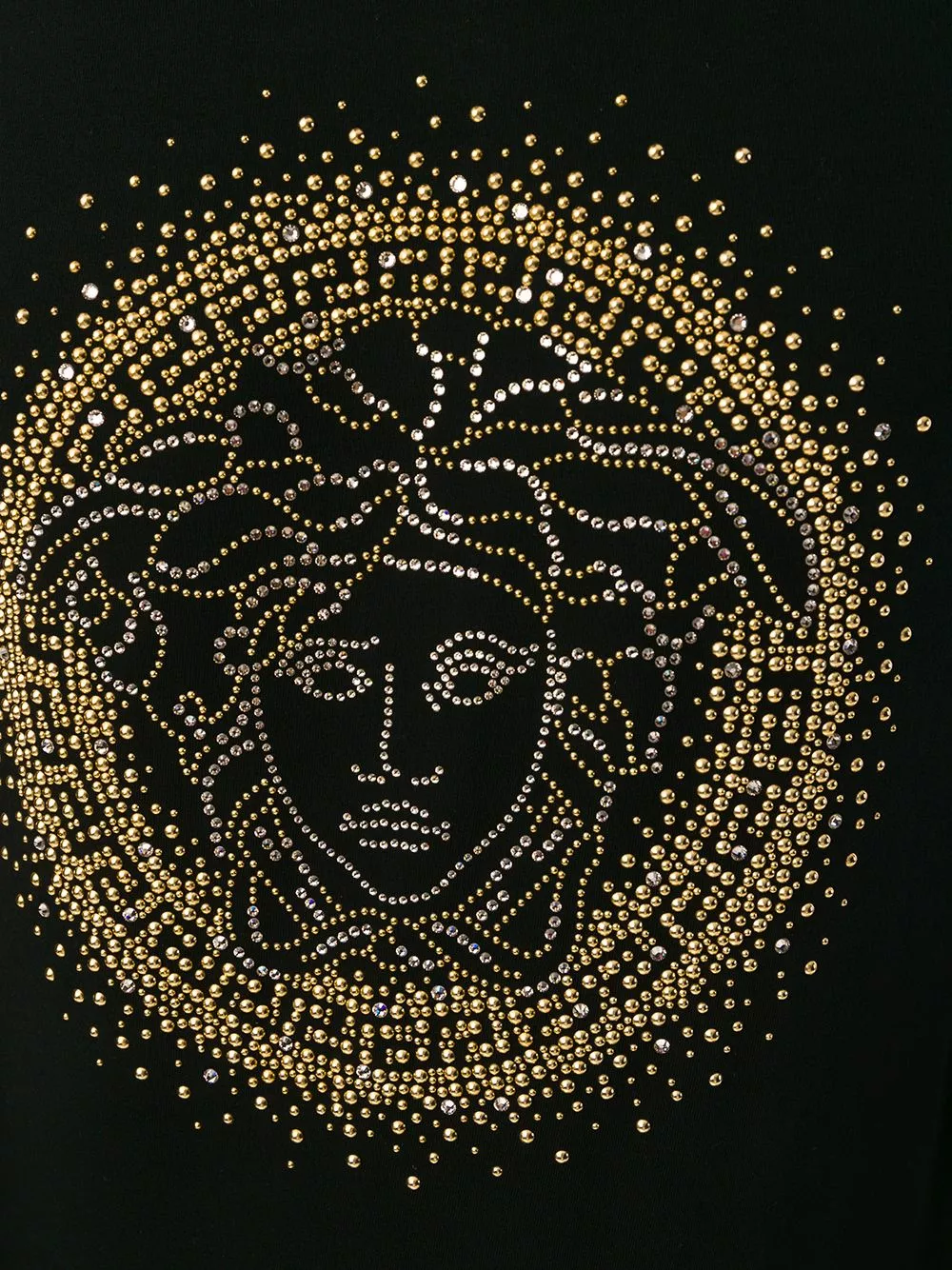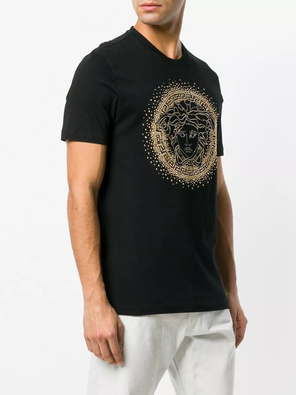 The Medusa emblem has long been a globally recognised piece of Versace’s iconography, and with each season the fashion house presents new twists on this familiar favourite. This Medusa bomber T-shirt places the Italian label’s logo in a gold and silver studded formation that develops a fascinating tactile finish. With a pleasing fit, this piece is an example of Versace’s continuing development of familiar designs.