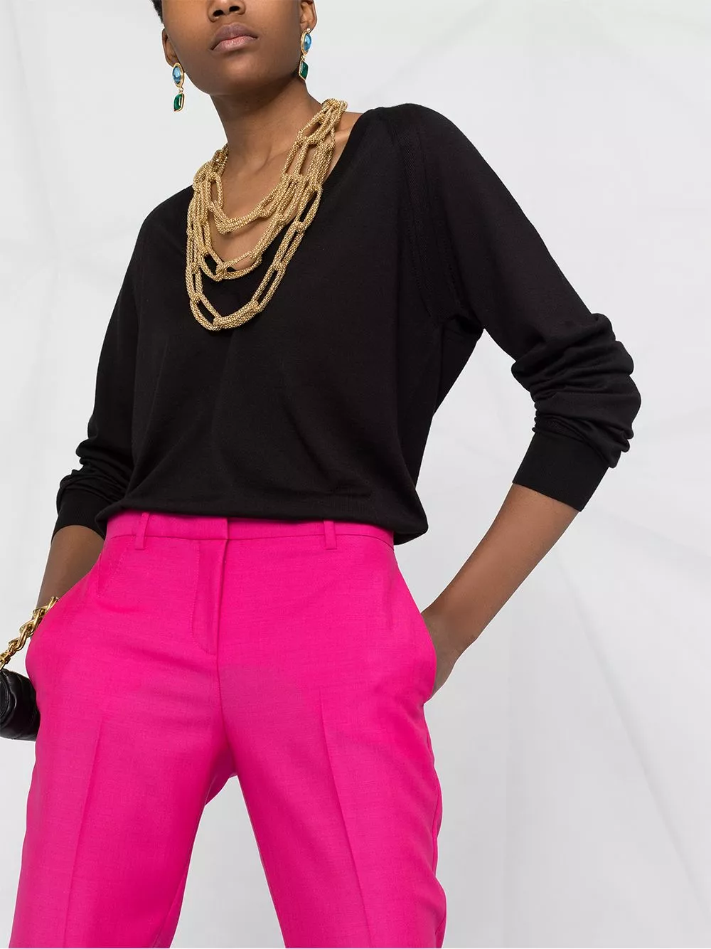 Some days you want to look formal with a delicate touch. Crafted from a pink mohair-wool blend, these Versace tailored trousers present a slim fit. Polished in pink.
