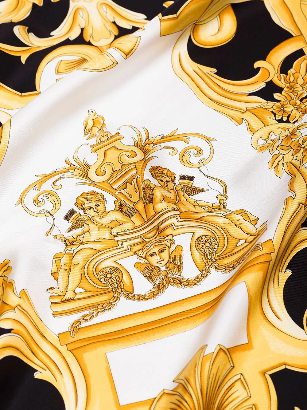 In memory of the brand’s founder Gianni Versace, Donatella’s SS18 collection reunited iconic 90s supermodels, reviving historic prints, archival looks and signature standout graphics from across the decade. Crafted in Italy from white, black and gold silk, this stunning Baroque print foulard scarf from Versace features finished edges and a square silhouette.