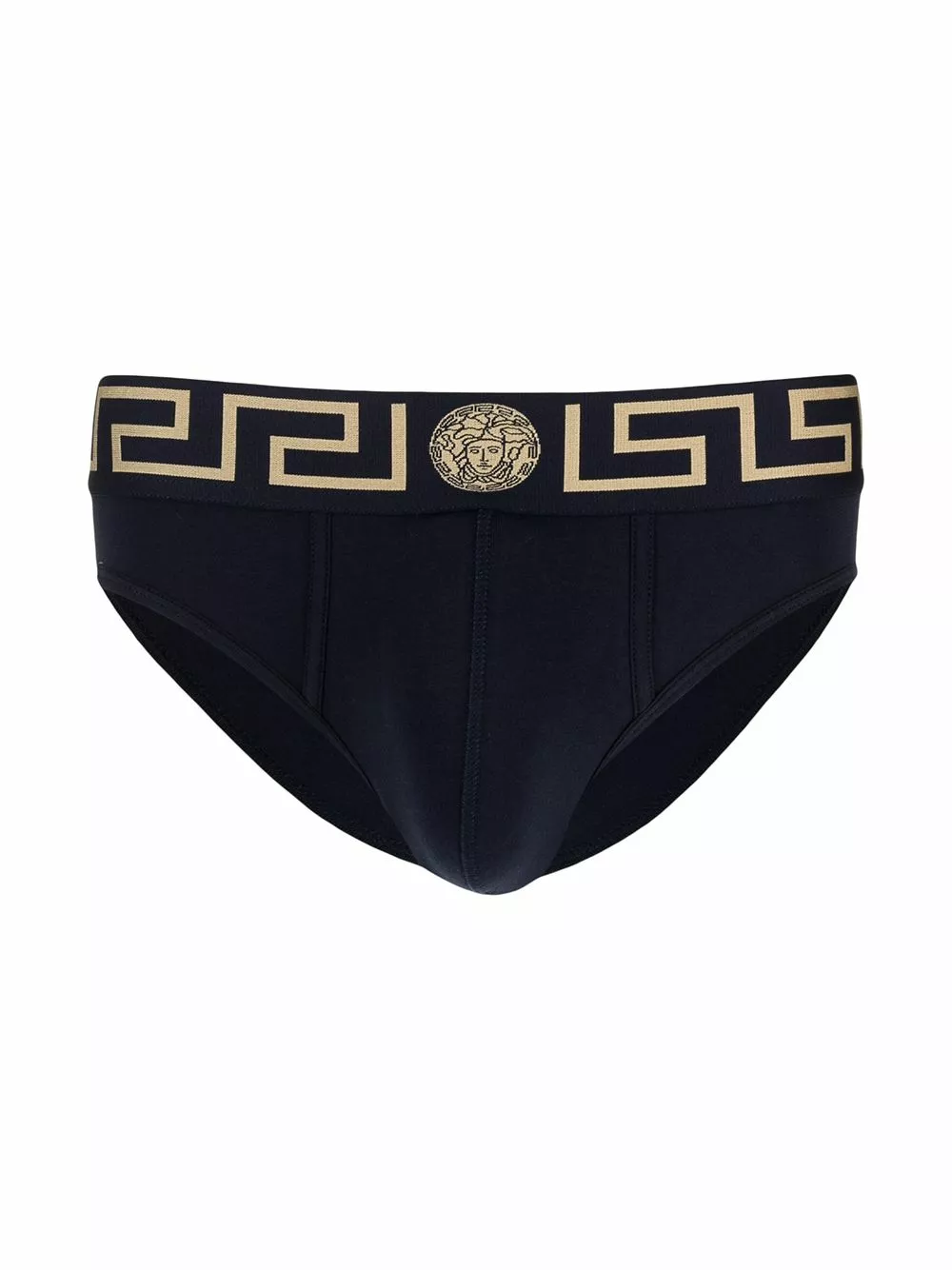 When in doubt, wear your best briefs, like these Medusa Greca ones from Versace. Crafted from stretch cotton, these briefs from Versace are detailed with a gold-tone Medusa logo to the waistband. You’ll be prepared for everything.