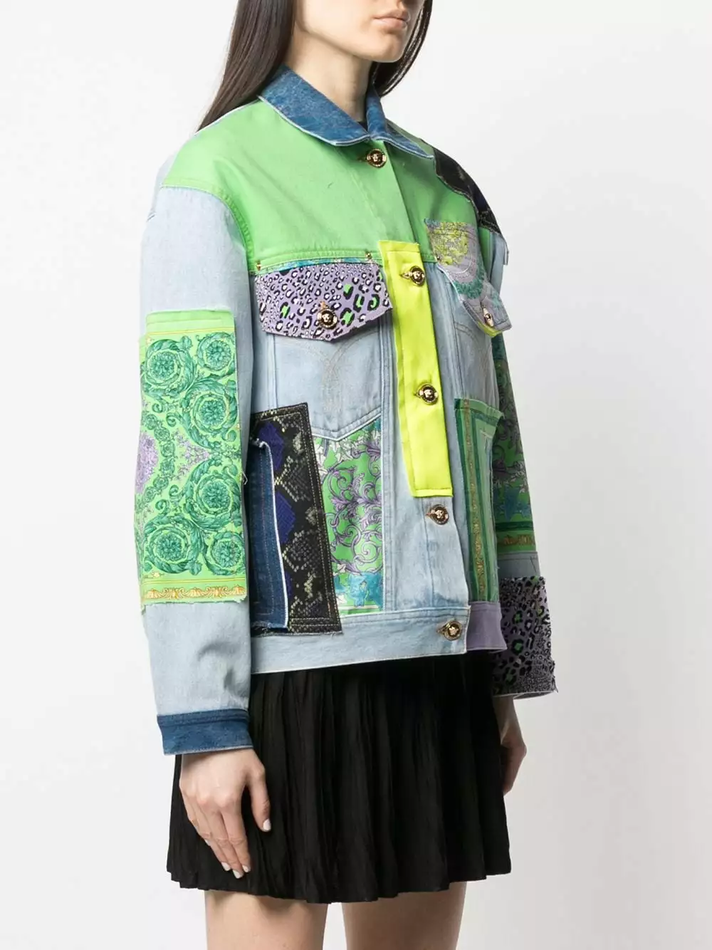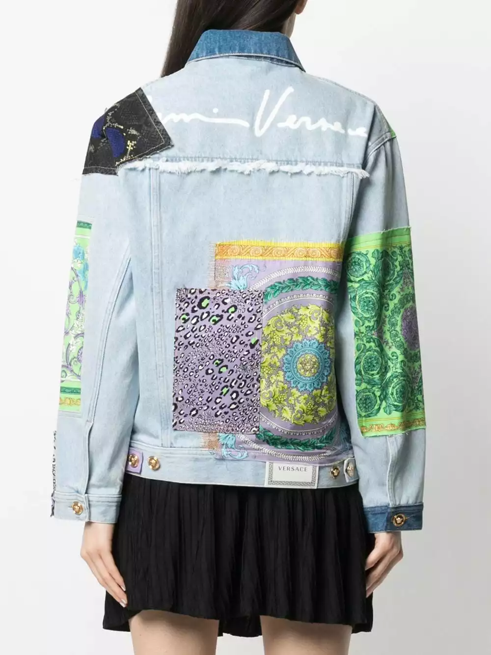 The humble denim jacket has received a makeover. This one from Versace features patterned patchwork detailing for a vibrant aesthetic. Stand out from the crowd.