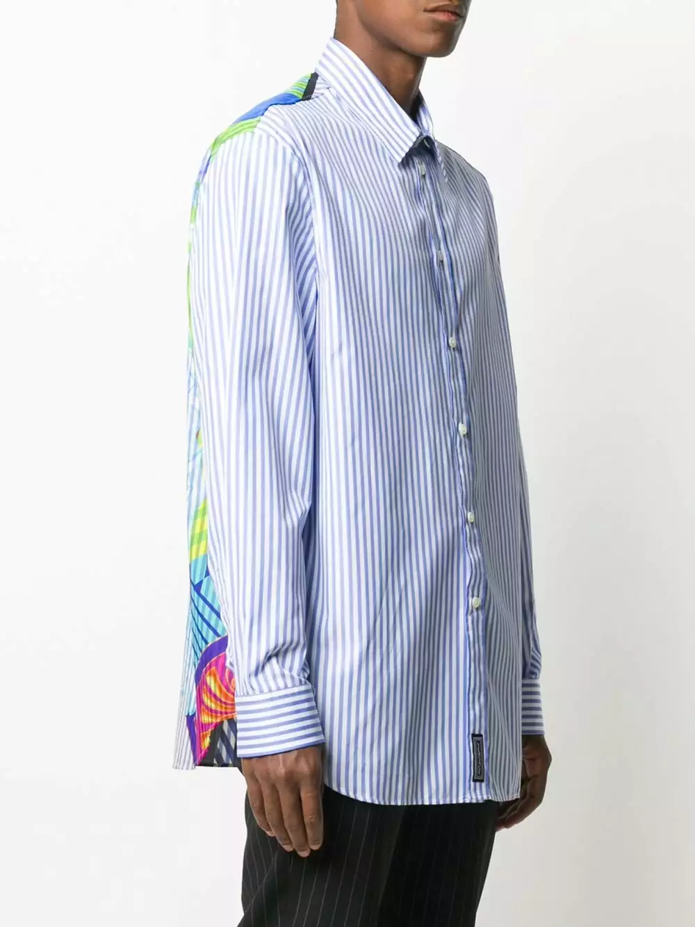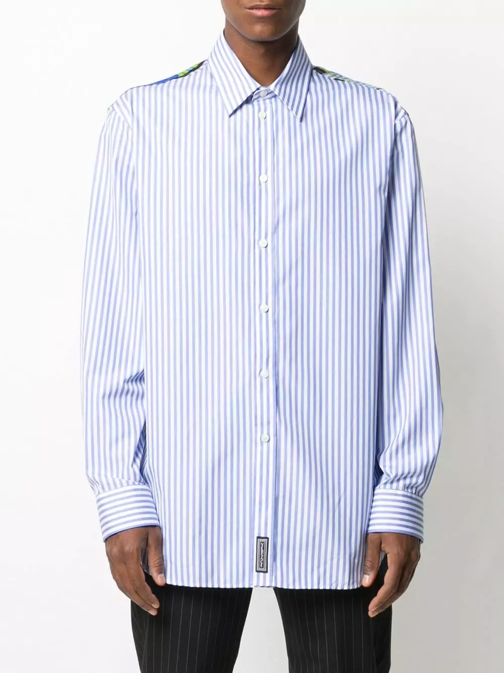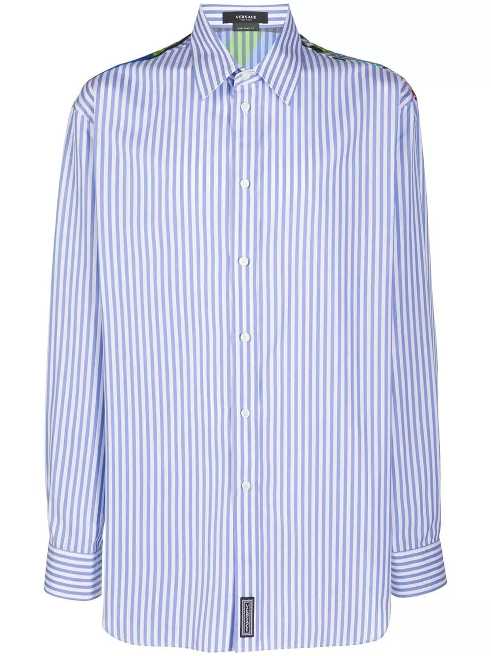 Show off how good you look effortlessly. This cotton pinstripe button-front shirt from Versace will let you do that. You could say it’s the perfect wardrobe staple.