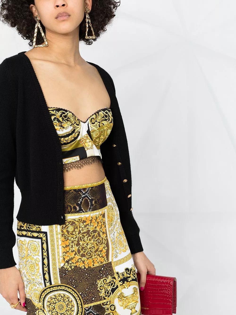Relationships can be complicated. But none are more complicated than the one you have with your bra, you don’t want to wear it at home but when it comes to heading out you’ll wear this printed Versace one with pleasure. No questions, please.