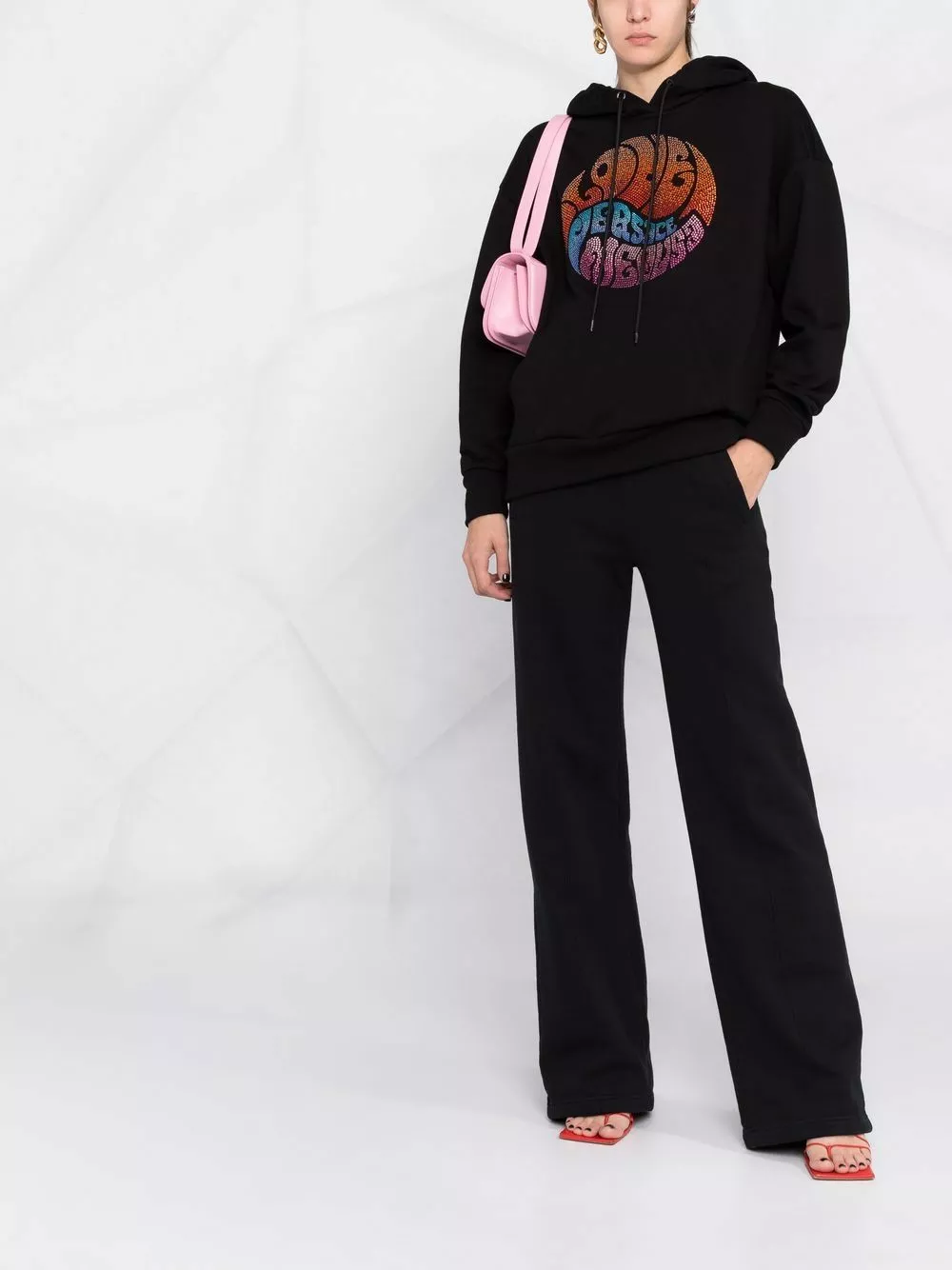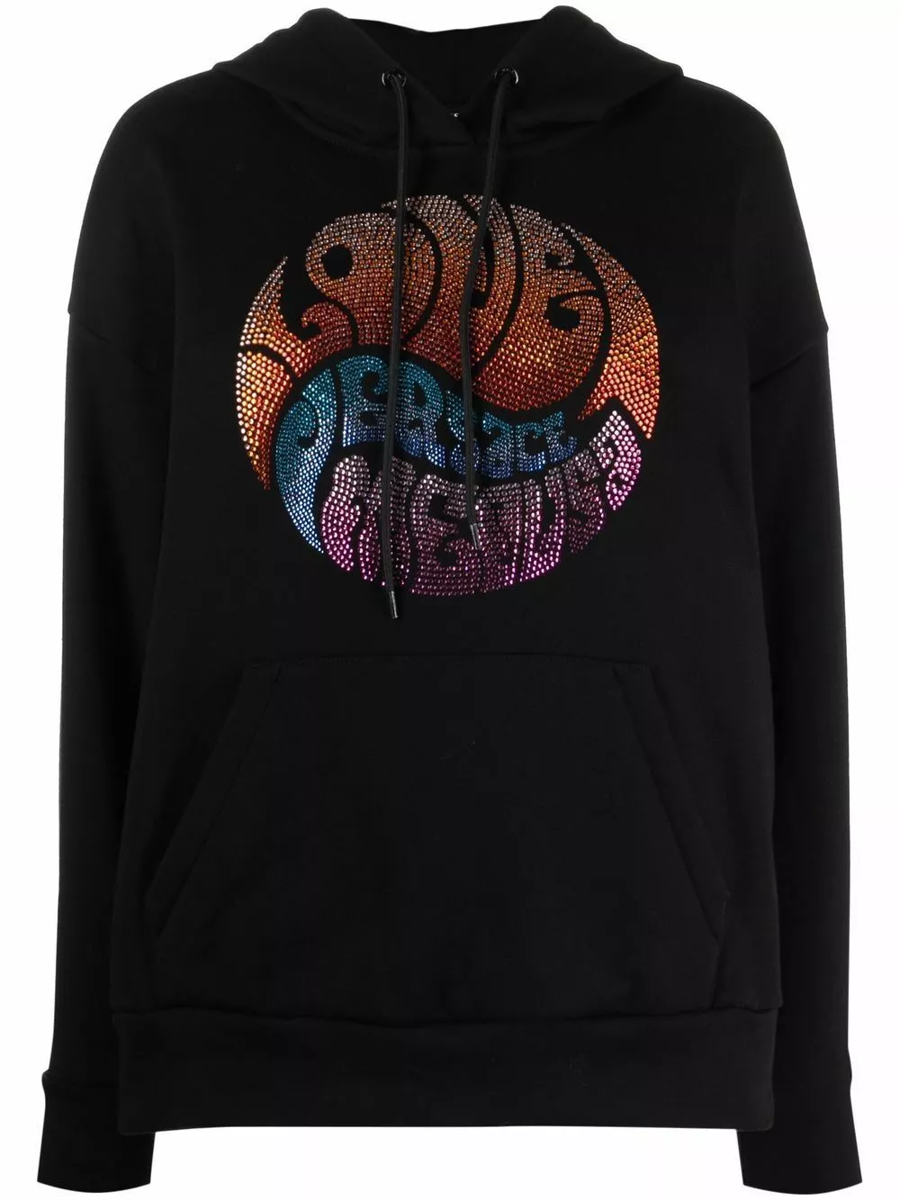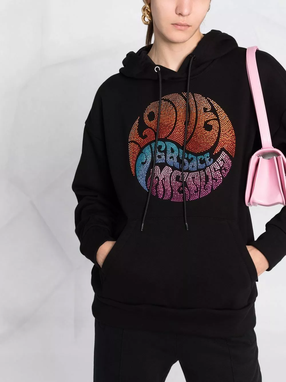 Crafted from soft cotton with a relaxed fit, this black hoodie from Versace is decorated with a dazzling rhinestone-embellished logo to the front.