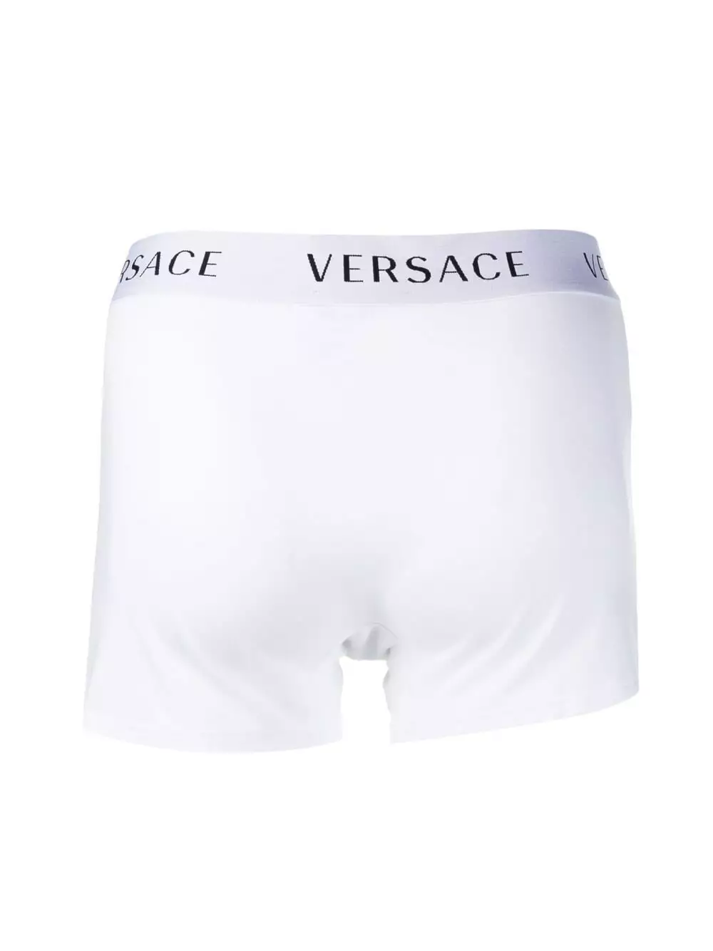 Detailed with a logo-print waistband, this set of two Versace boxer shorts have been constructed from stretch-cotton and feature tonal stitching.