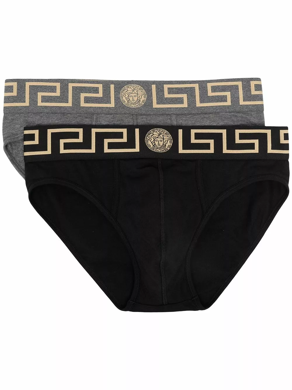 You could go on about your love for Versace, but instead you’ll keep it brief. Literally, with this Medusa head motif set in black and grey. There’s no time to ‘waist’.