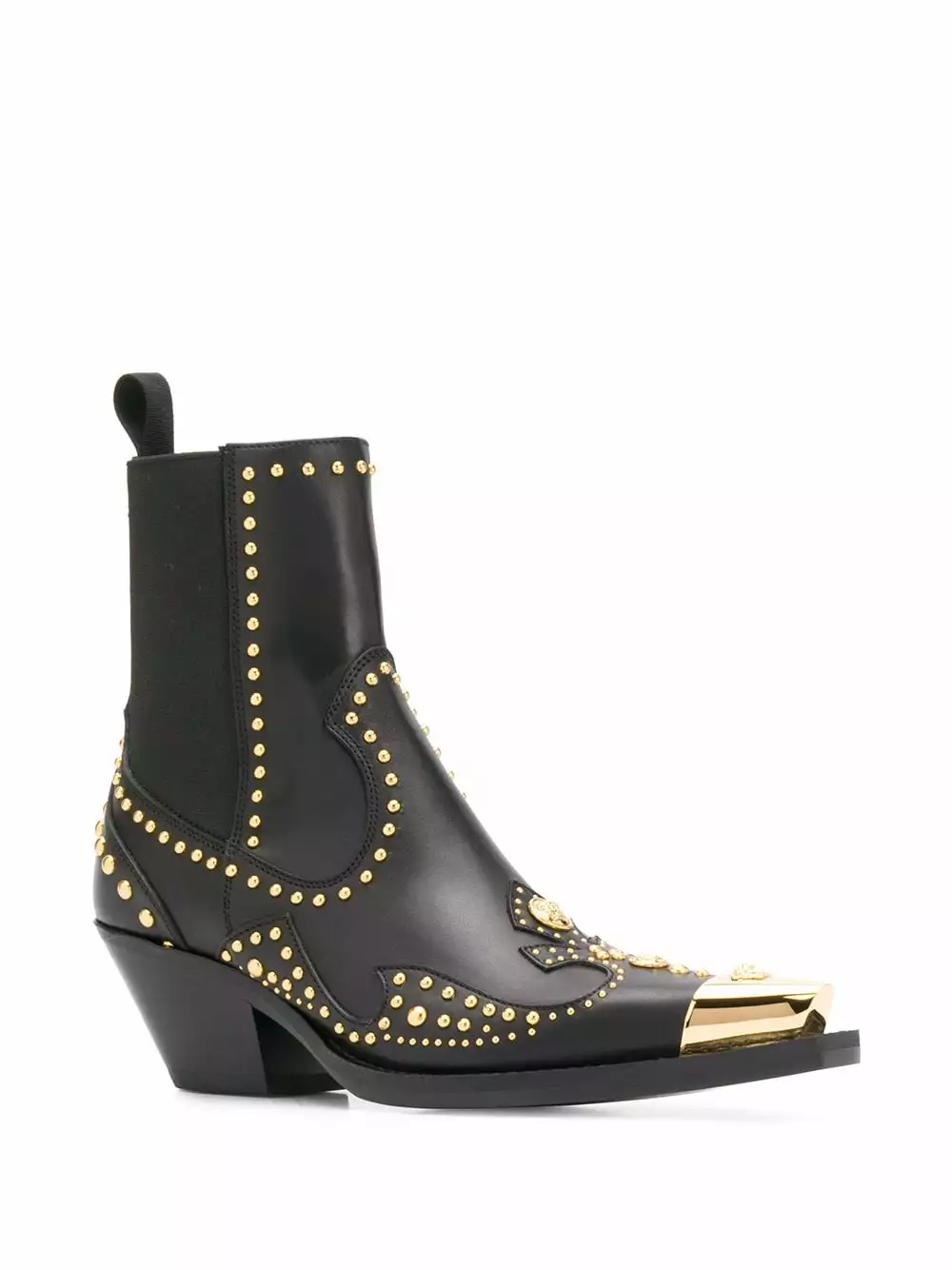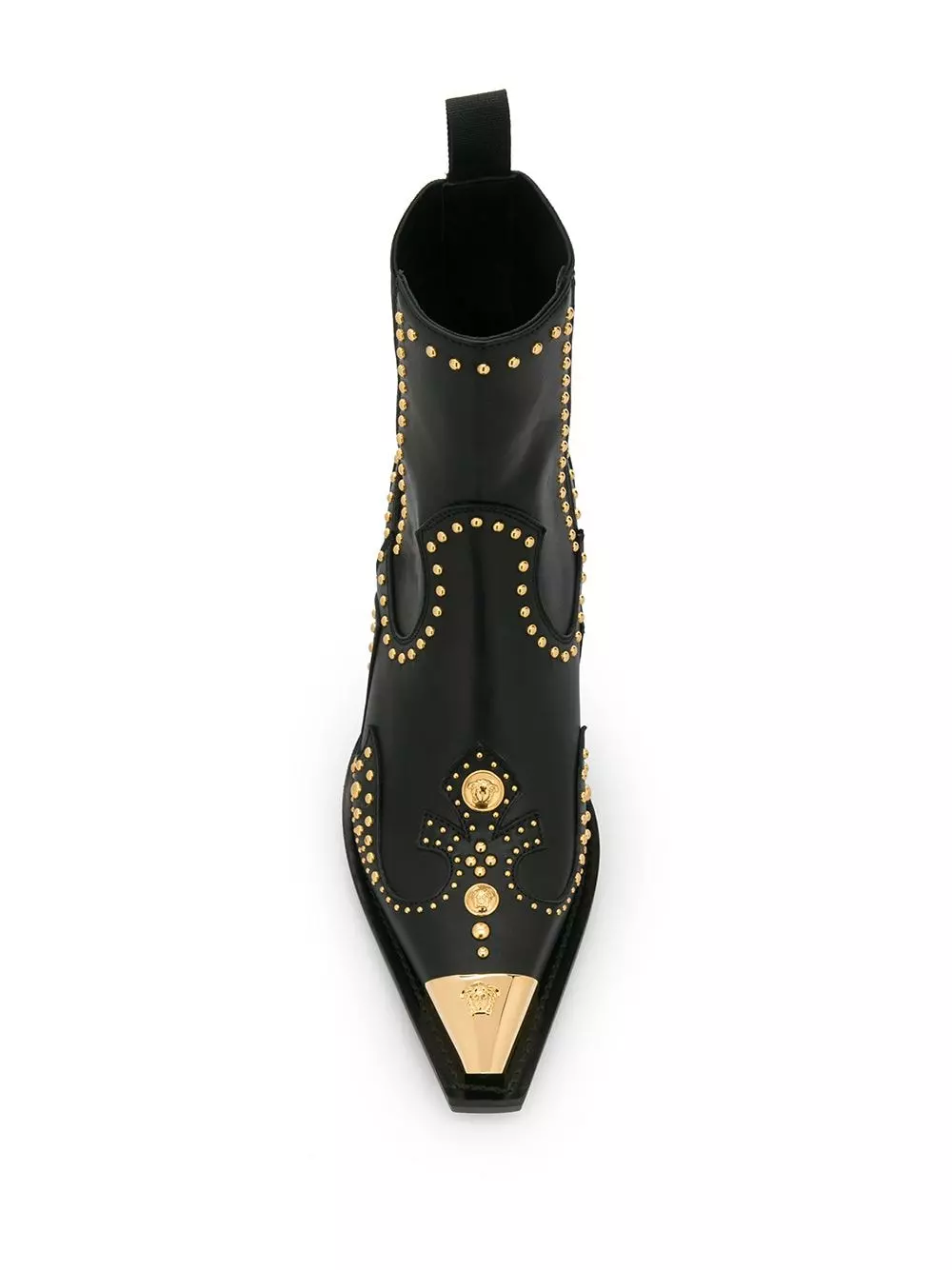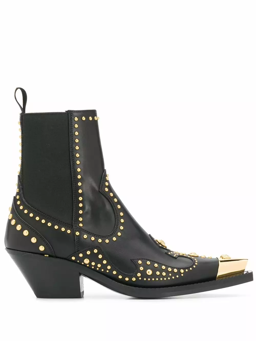 It’s not only bandits and cowboys who got the cool boots – Versace got some pretty nice ones too. Like these Versace studded ankle boots. As jet black leather is always a badass shade, these shoes break the sombre tone with dotted studs all around and a statement metal cap on the toe. Who’s the bag guy now? Featuring gold-tone hardware, micro stud details, a metal toe cap, elasticated side panels, a pull tab at the rear, an ankle length, a chunky mid-heel, a leather sole and Medusa head logo embellishments.