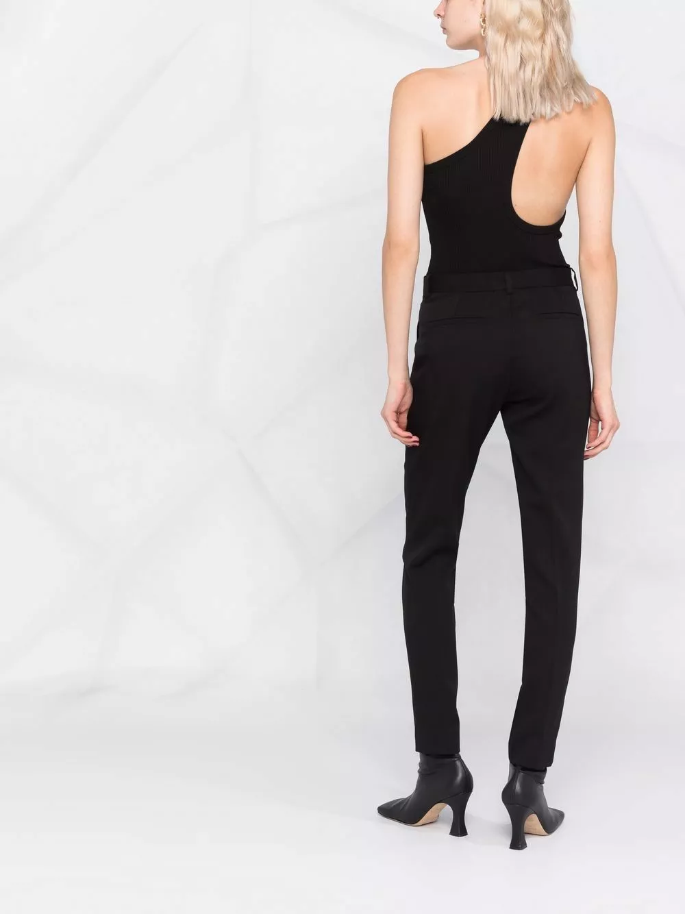 Versace goes minimalist with this pair of stretch-fit trousers. The tailored silhouette is crafted from wool with a hint of elastane for comfort and boasts a sleek skinny fit for versatility.