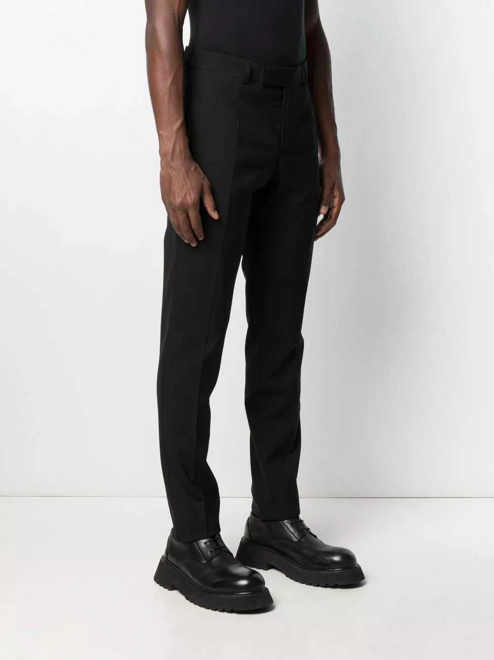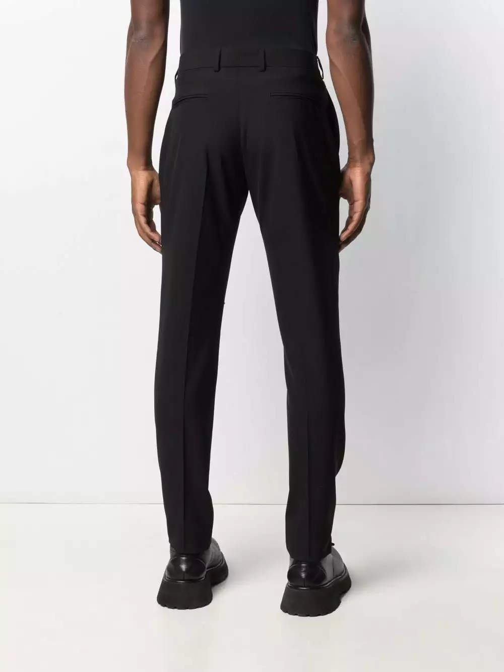 Versace lets the tailoring take centre stage with these black virgin wool trousers. Detailed with pressed creases and rear welt pockets, these refined pair are a nod to classic design and Italian craftsmanship.