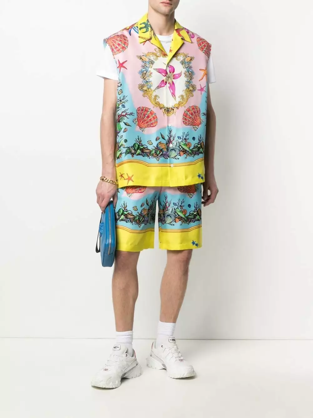 Make a splash with Versace. Designed in silk, this sleeveless Trésor de la Mer print shirt is an easy way to wear your favourite label. Summer never looked so good.