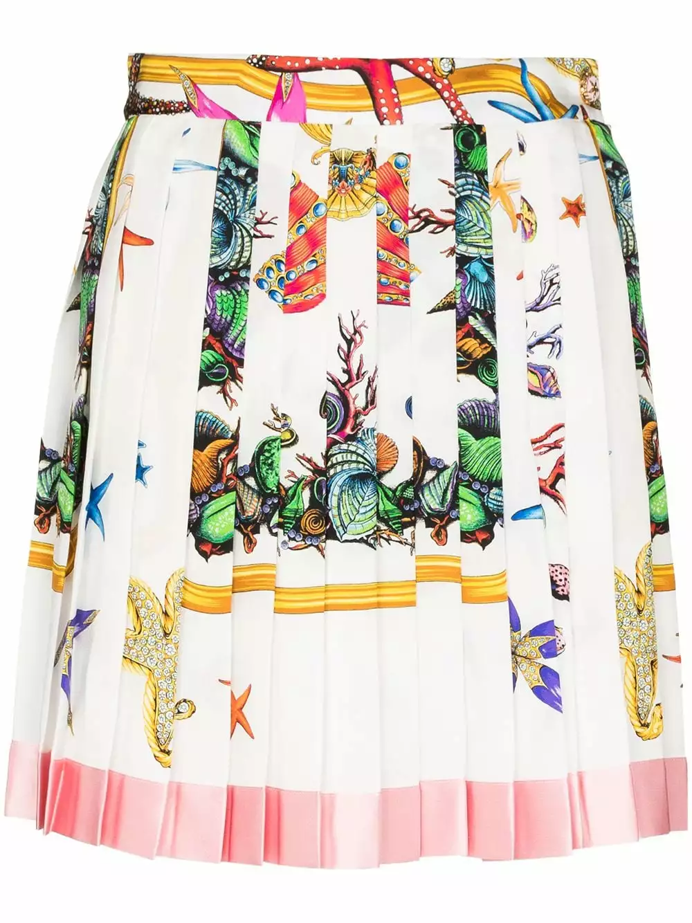 Life’s a beach. Make sure your wardrobe is filled with summer-ready staples, like this Trésor de la Mer printed skirt from Versace. Crafted from multicolour silk, it’s a dreamy addition.