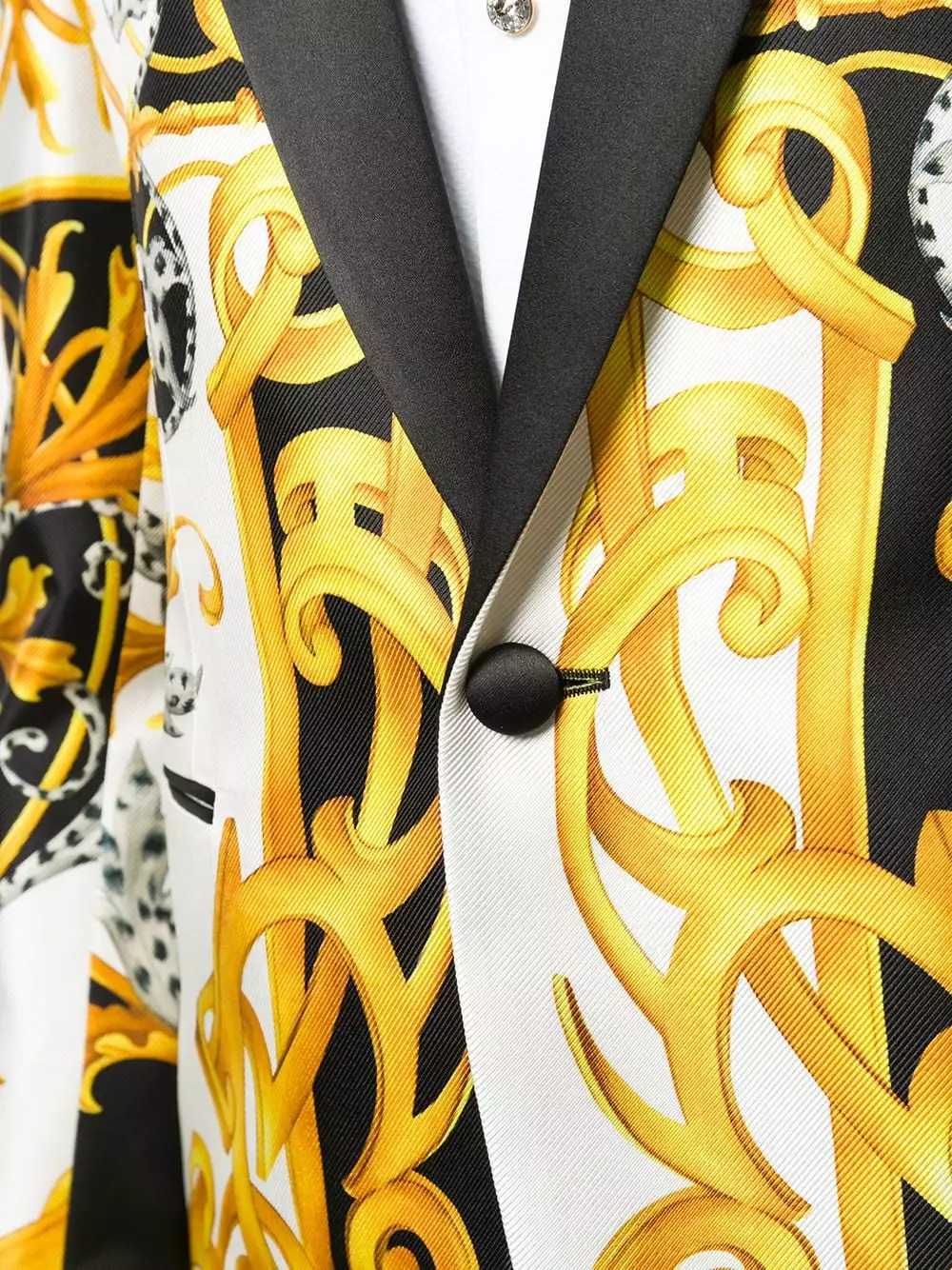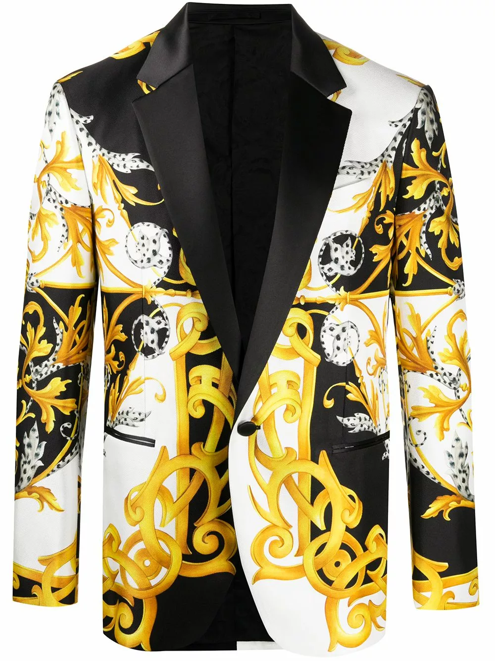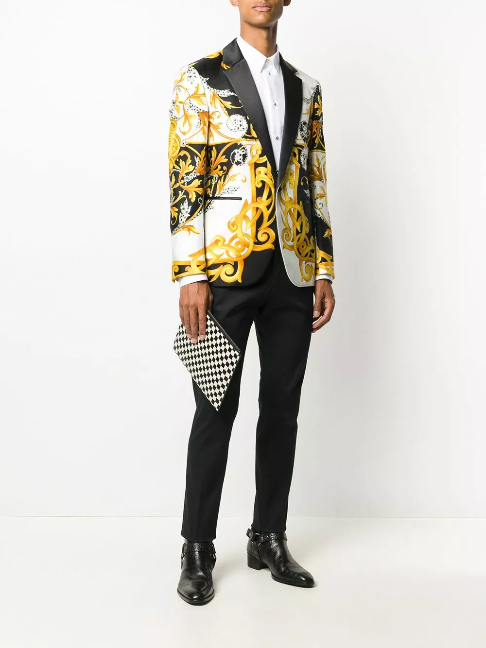 Who wants to blend into the crowd? Not us and not you, which is why we know you’ll love this Barocco Acanthus print blazer from Versace. Your welcome.