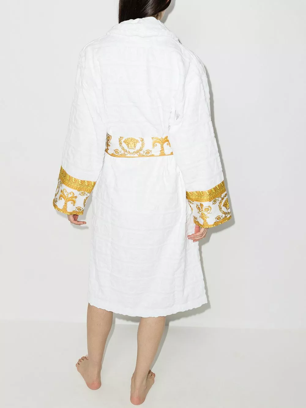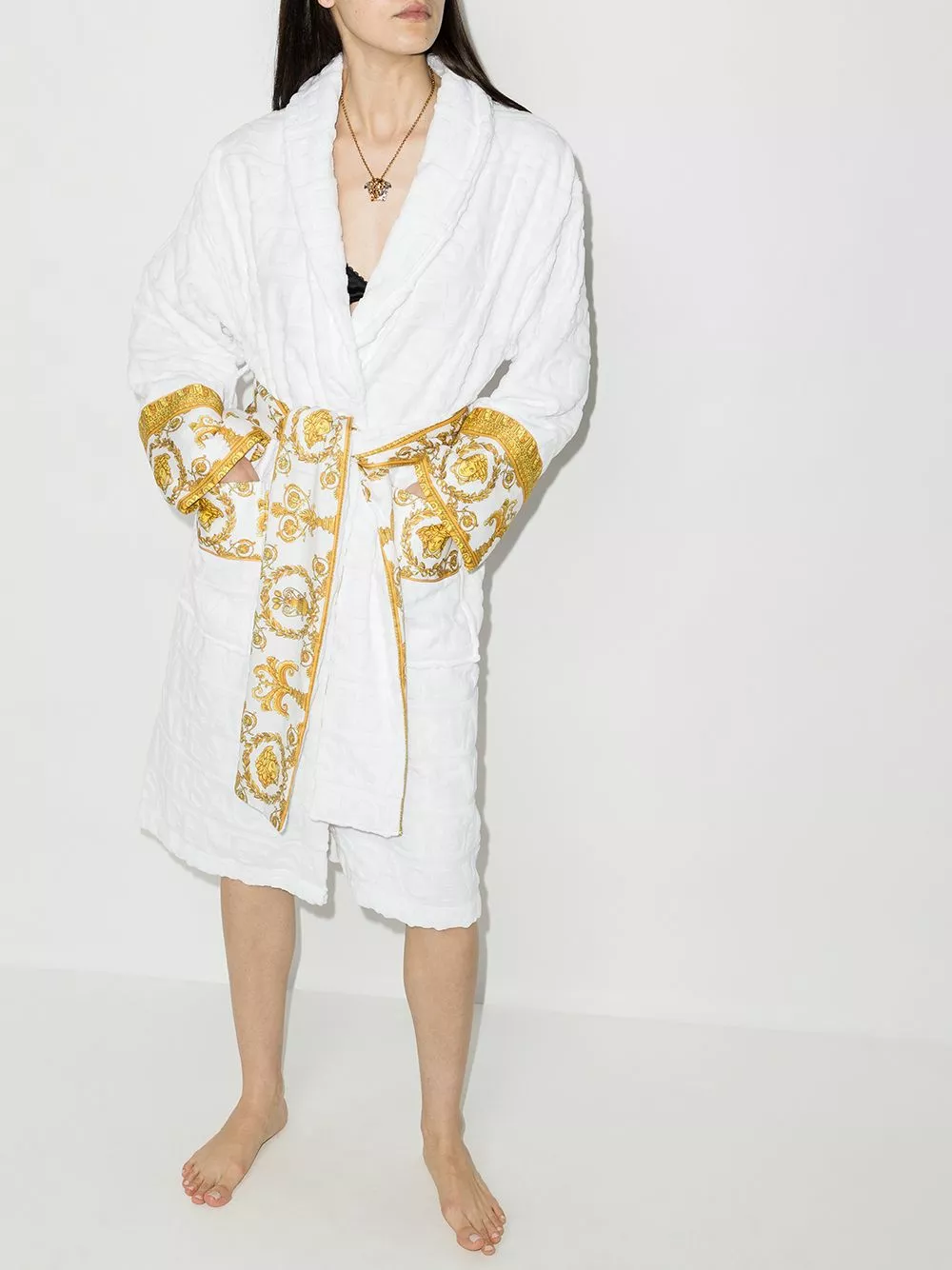 Is there anything more relaxing than a long bath? Well, there is. Getting out of the shower and wrapping yourself in this Barocco-print bath robe. This Versace piece is not going on the floor.
