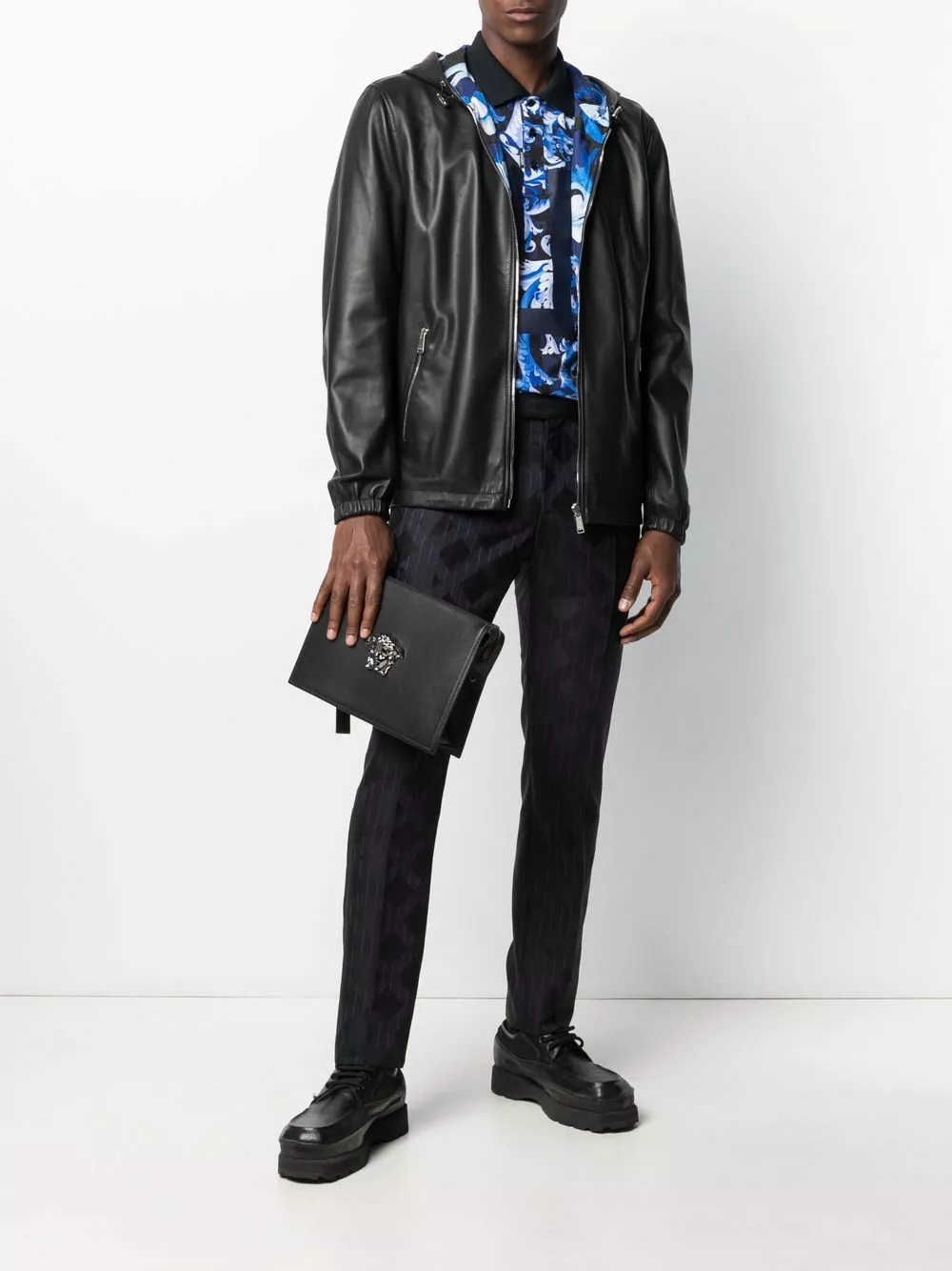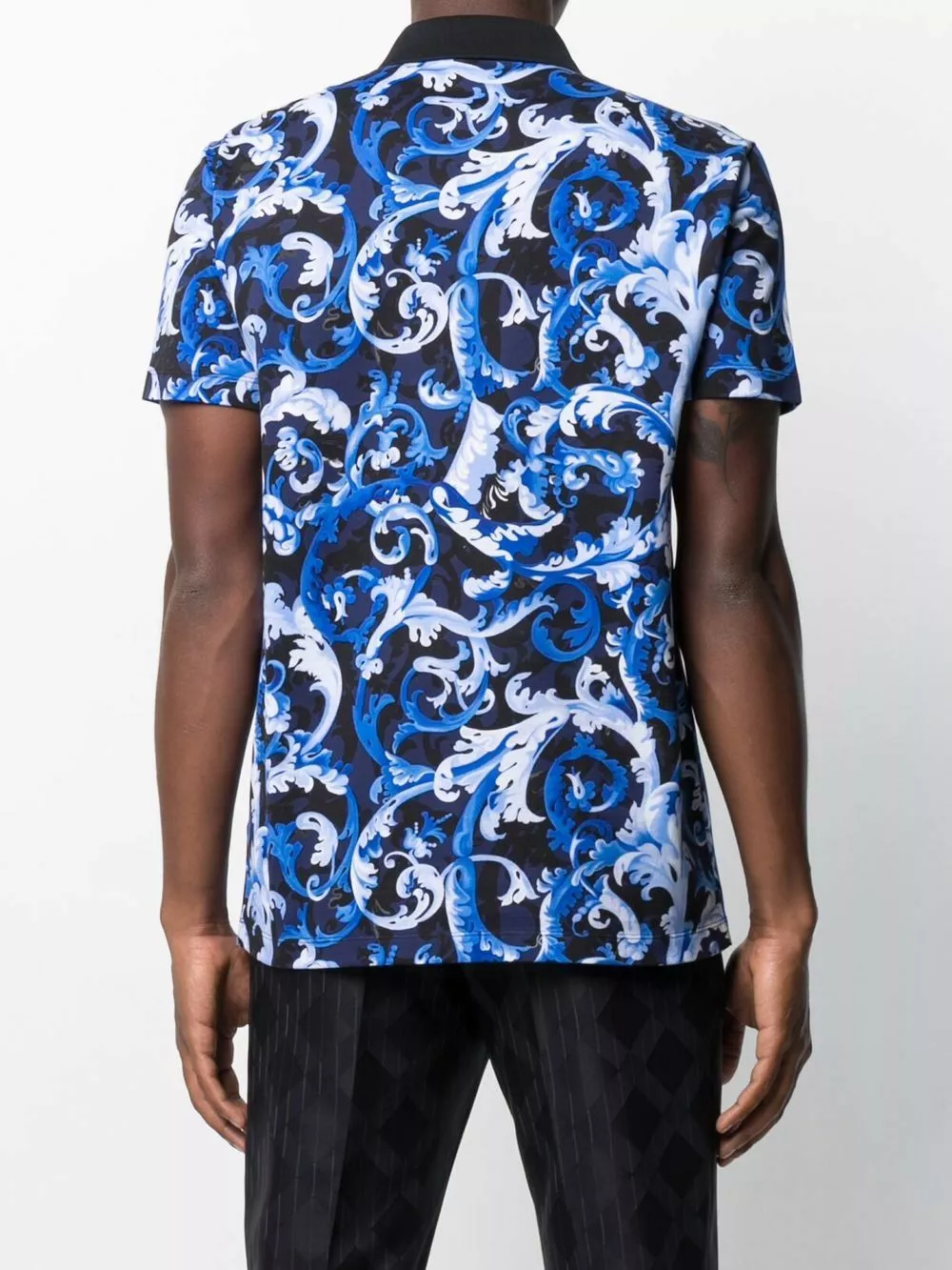 Introduced in Versace’s AW21 collection, the Baroccoflage print combines the Atelier’s iconic Barocco motif with a camouflage pattern. Crafted from cotton piqué, this polo shirt is also emblazoned with a Greca motif across the chest that pays homage to the brand’s roots.