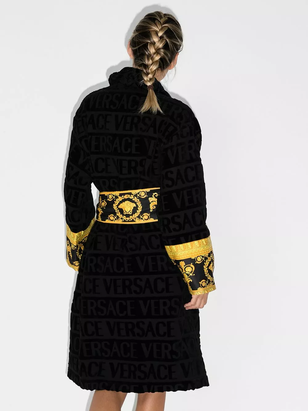 So…you ‘baroque’ into Donatella’s wardrobe? Well, there’s one thing we won’t make you return, and its this dressing gown with a tied waist and Baroque print trim. It suits you better anyway.
