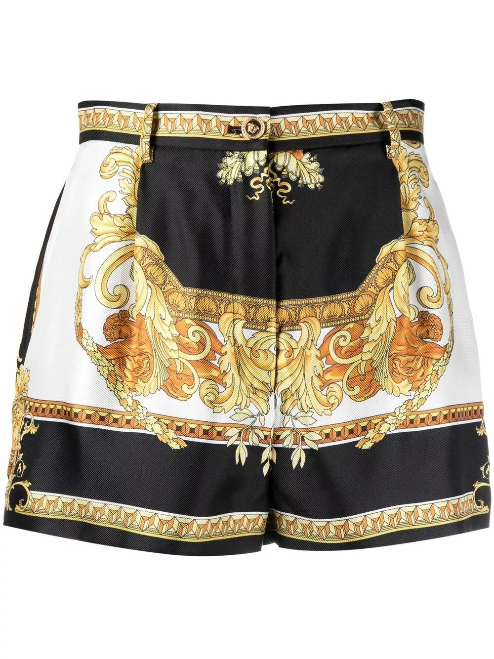 Versace’s exuberant style approach is seamlessly captured by these high-waisted shorts, constructed from soft silk. This short design boasts an iconic baroque print, illustrating the typical Italian refinement that the brand is renowned for.