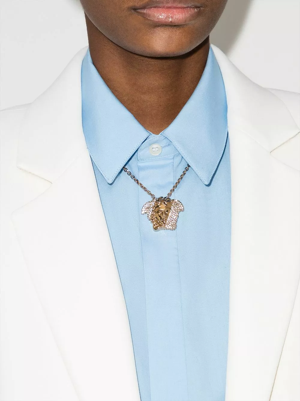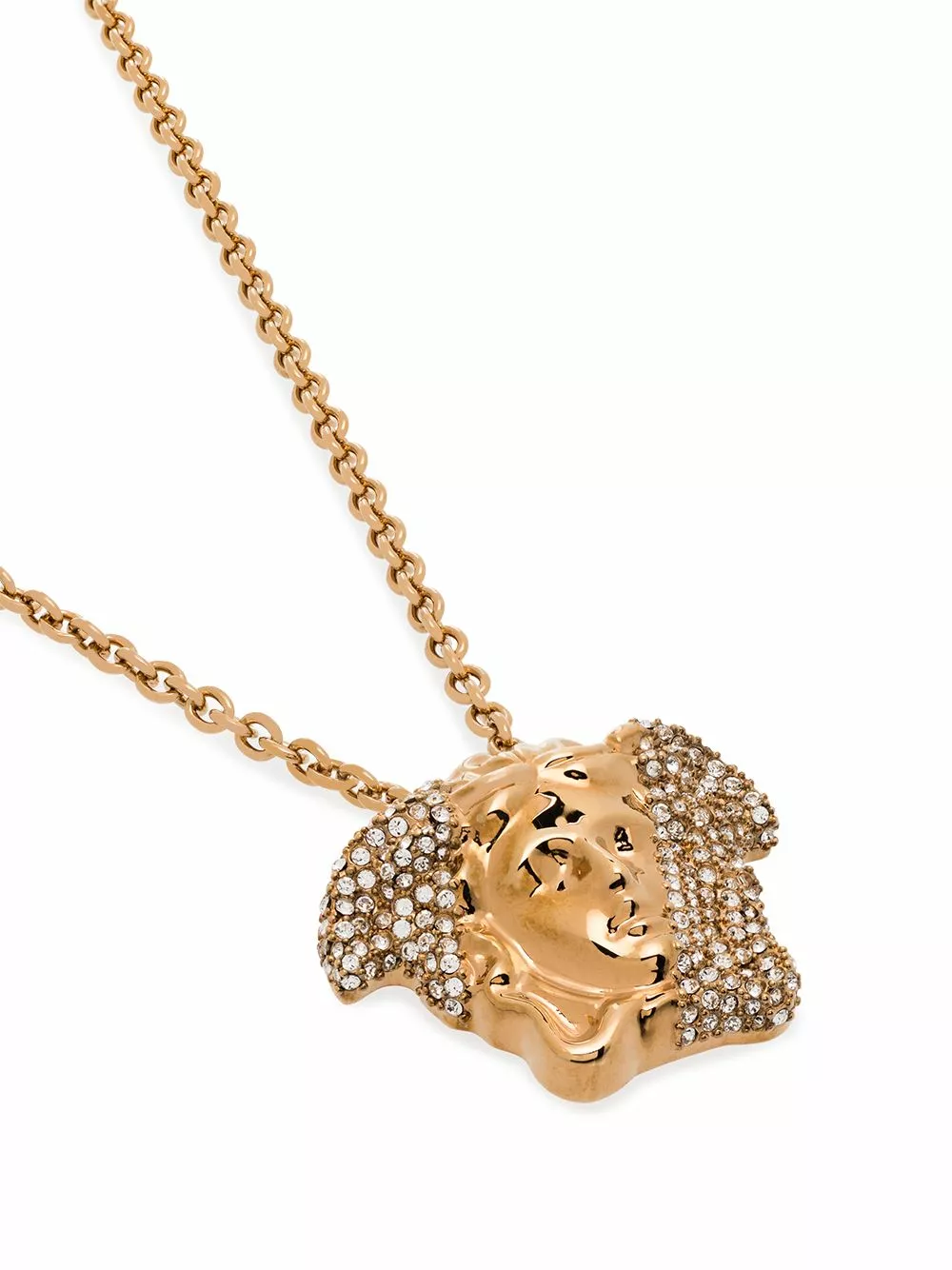 Did you know that in Greek mythology, a Medusa was a winged human female with living venomous snakes in place of hair? Sounds scary, we know. However, in this case, the existing one on this crystal-embellished necklace from Versace is only meant to help you maintain your fashionista status. Feeling ensnared yet?