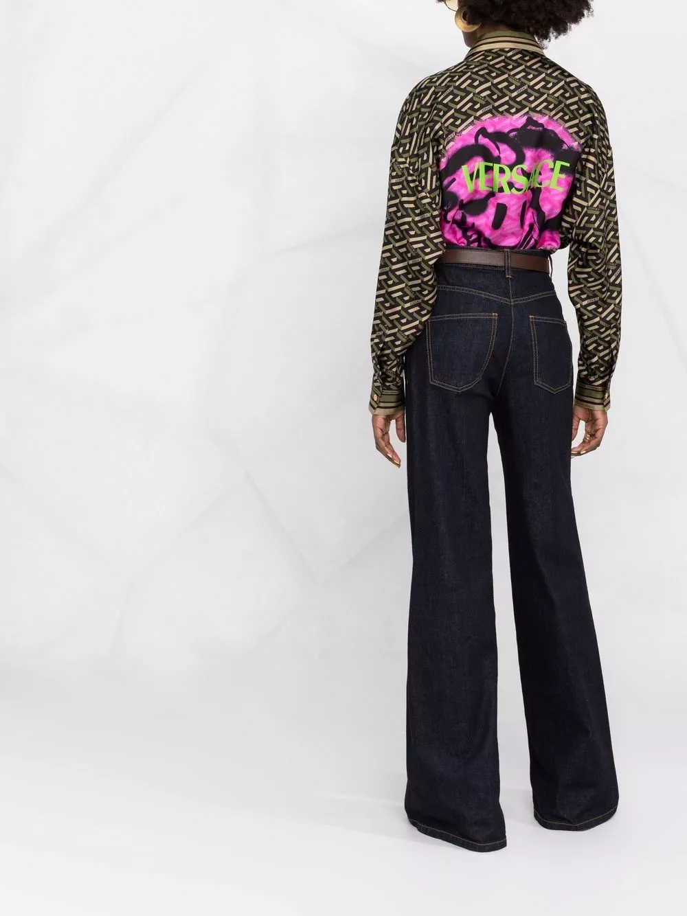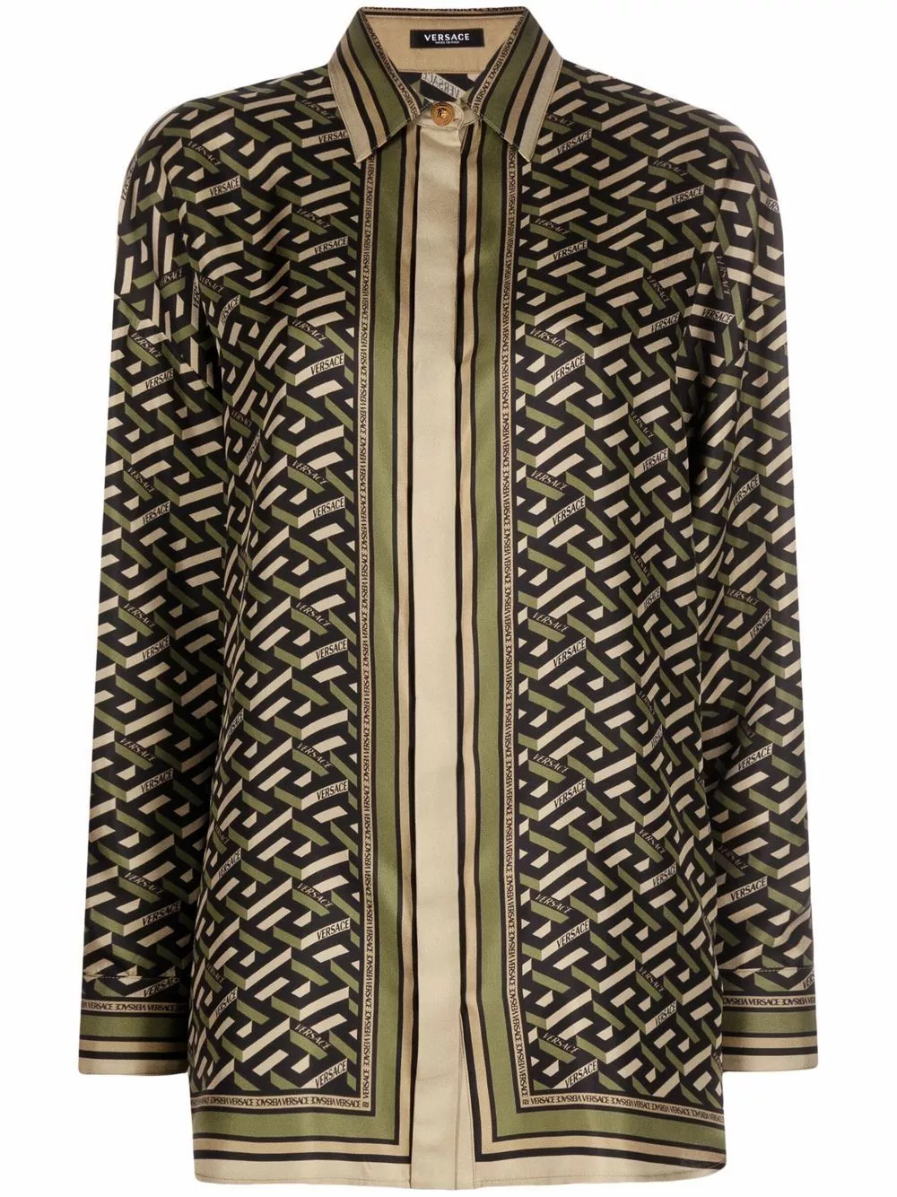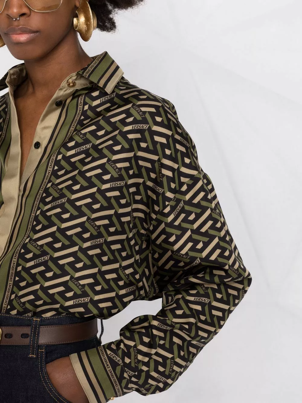 Versace’s shirt showcases the Italian house’s penchant for bold design. Cut from silk-twill printed with a logo and graphic print all over, it’s accented with a graffiti print at the back that gives it an unexpected playful finish.