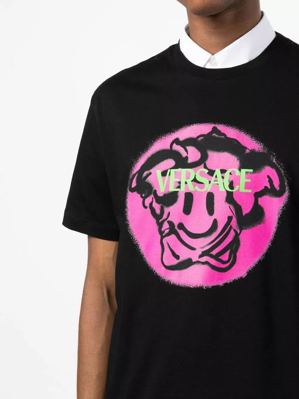 Reimagining the brand’s signature Medusa motif, Versace presents this cotton T-shirt for AW21. Printed with a smiley face, this piece is a playful spin on a distinguishable design.