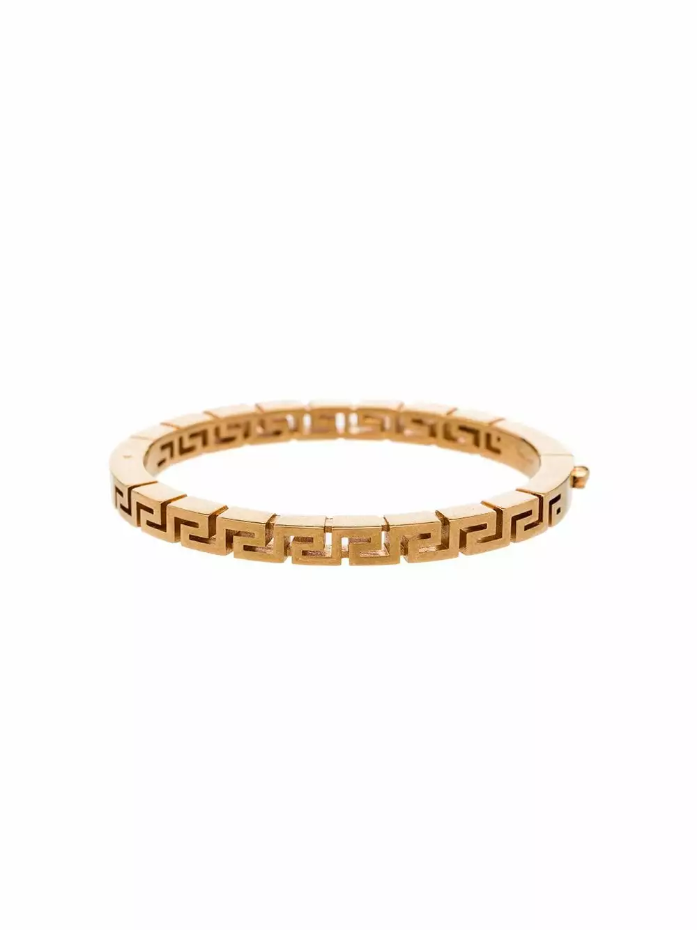 Looking for a way to make your outfit shine? This Greca bangle bracelet from Versace is clearly the way forward – with a Greca motif pattern and a clasp fastening, this piece is sure to bring all the attention to your wrist. Bad hair day? Distract, divert, overcome. Fastening and a Greca pattern design.