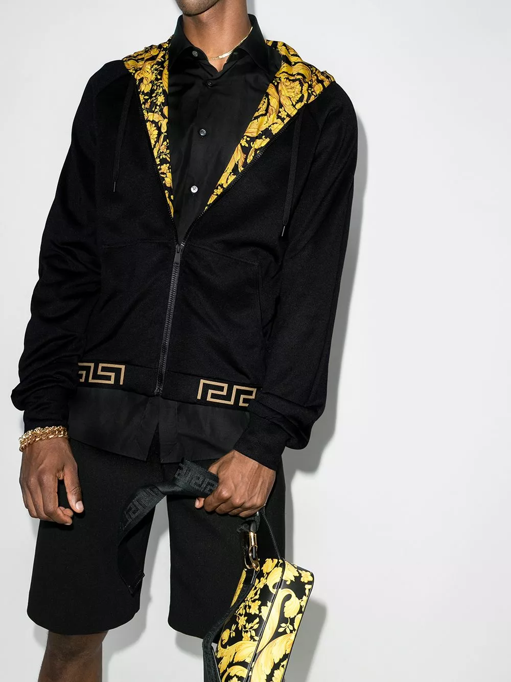 Need to change it up a bit? Versace will help with that. Boasting the famous greca detailing, this zip-up hoodie exists to fit your deepest fashionista needs. So much love for it.
